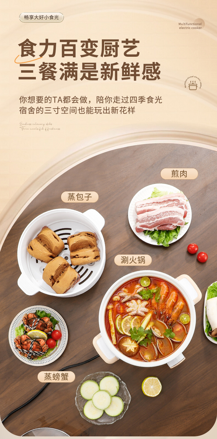 Бытовая небольшая электрическая кастрюля, электрический вок, электрическая пароварка, электрическая кастрюля, электрическая кастрюля, мелкая бытовая техника, универсальная кастрюля с антипригарным покрытием для приготовления пищи на пару и приготовления пищи