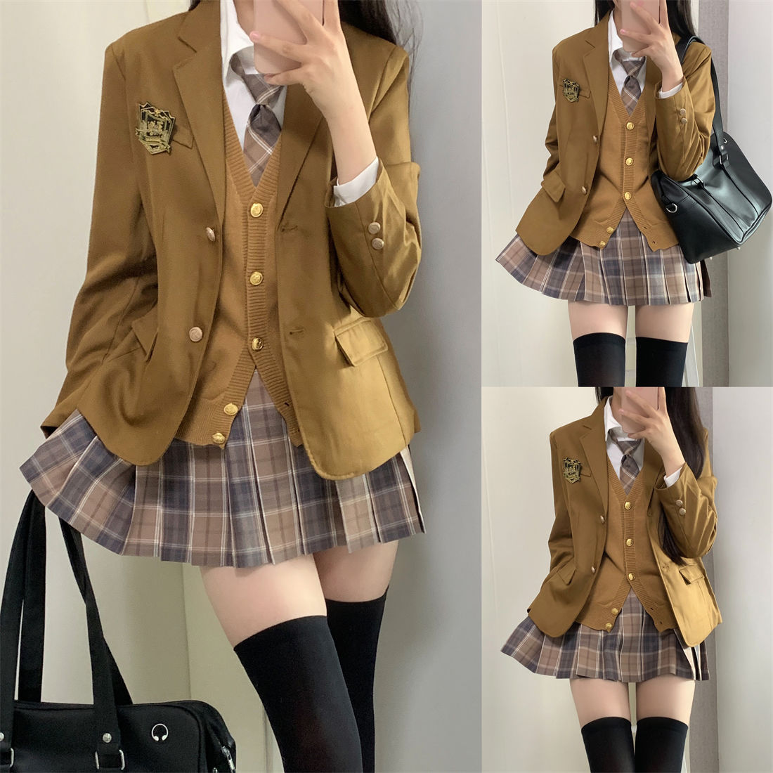 Ванильный круглый костюм JK, свитер, осенне-зимний комплект, школьная форма, многослойная одежда в студенческом стиле с длинными рукавами.