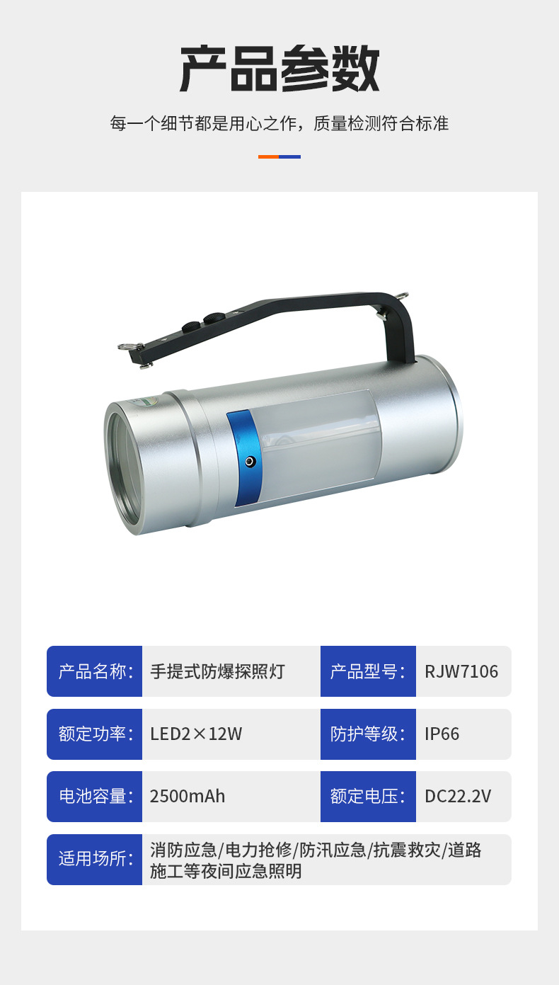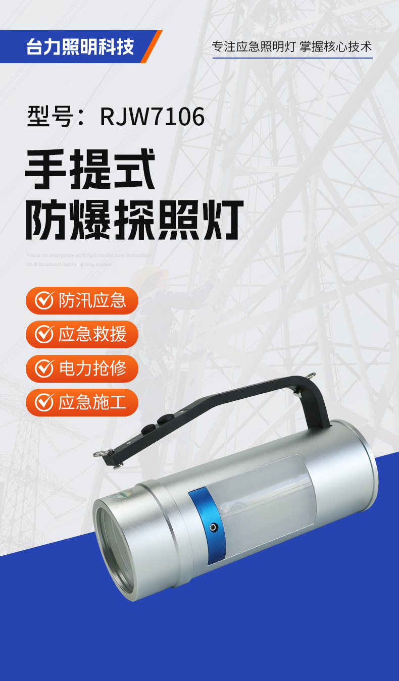 RJW7106 Портативный взрывозащищенный прожектор многофункциональный водонепроницаемый магнитный пожарный спасательный красный синий предупреждающий фонарик