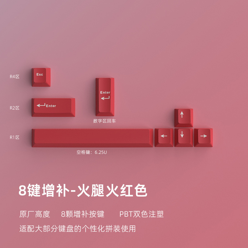 Оптовая продажа в наличии трансграничных красных колпачков для ключей Amazon Ham, 8 дополнительных клавиш, оригинальный профиль, PBT, двухкомпонентное литье под давлением