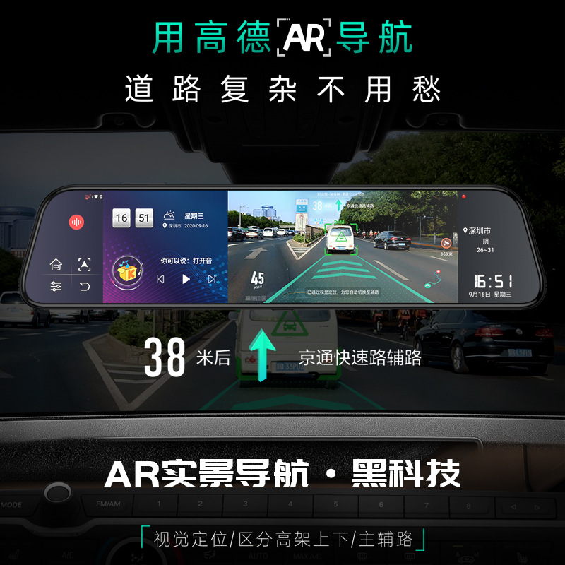 12inch Gaode AR Навигация 4G Зеркало заднего вида Регистратор для вождения Двойной объектив 1080 При слабом освещении Ночное видение Bluetooth ADAS