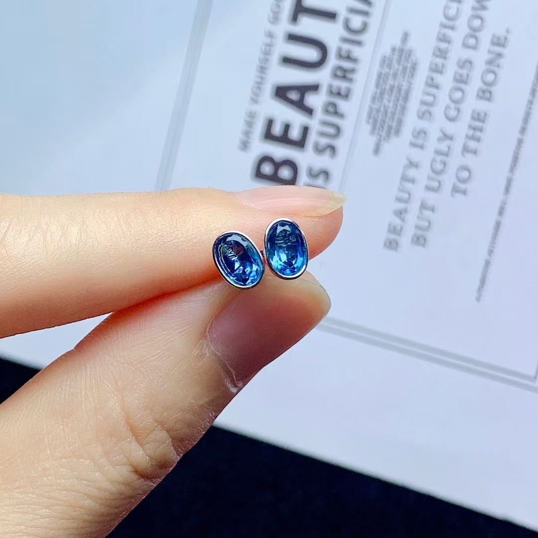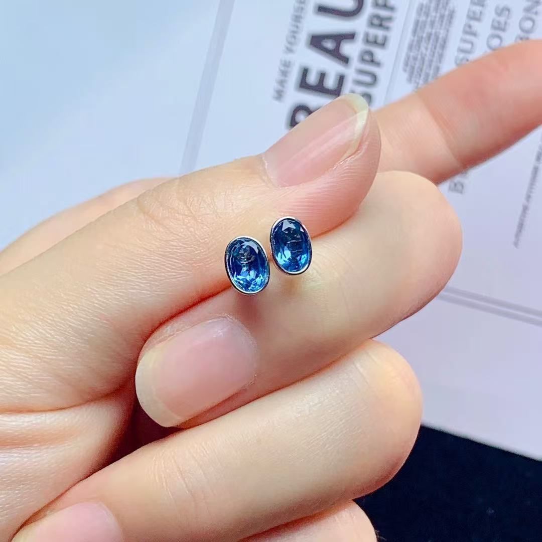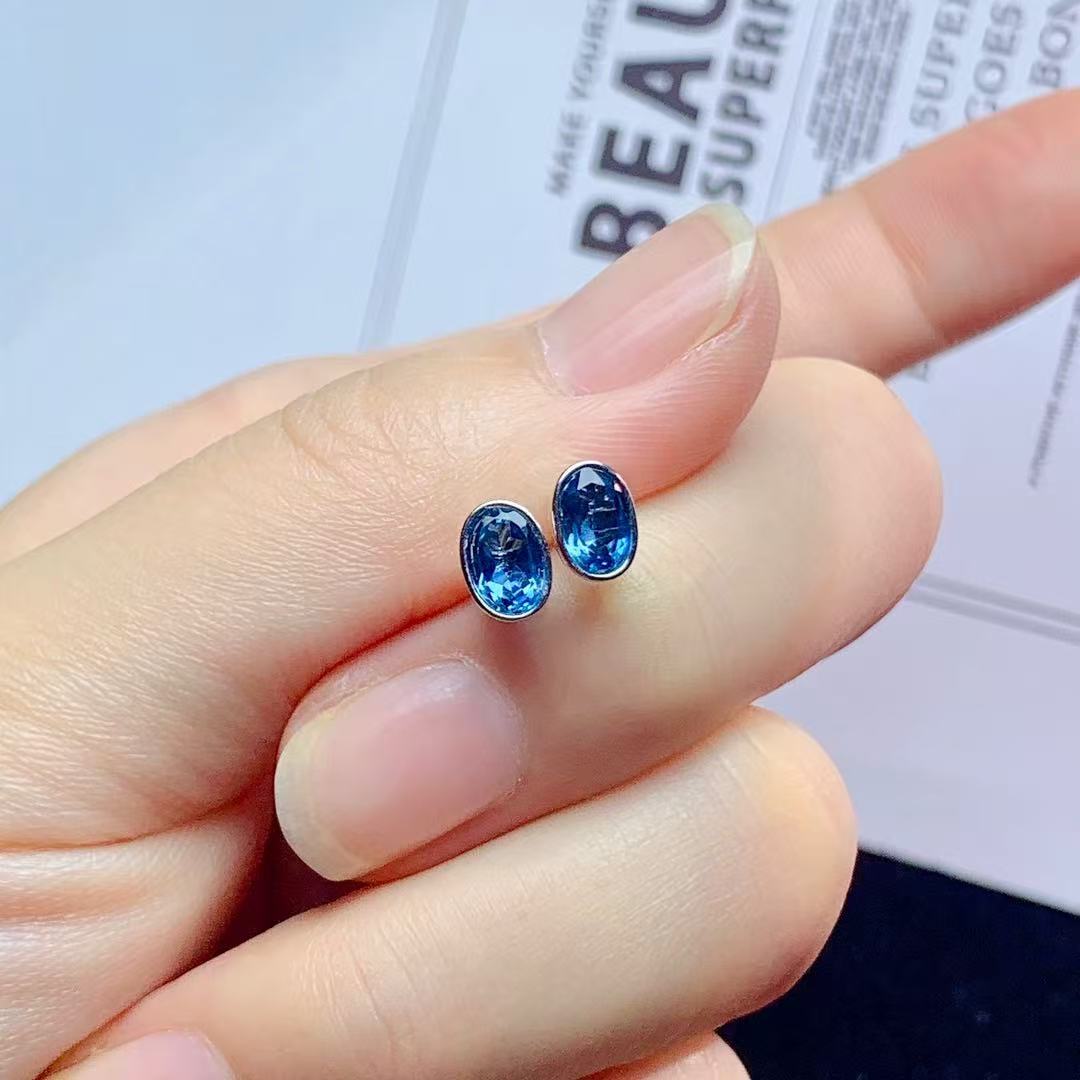 Серьги с лондонским голубым топазом, серебро 925 пробы, простые модные универсальные ювелирные изделия с цветными драгоценными камнями, высококачественные серьги для женщин, оптовая продажа