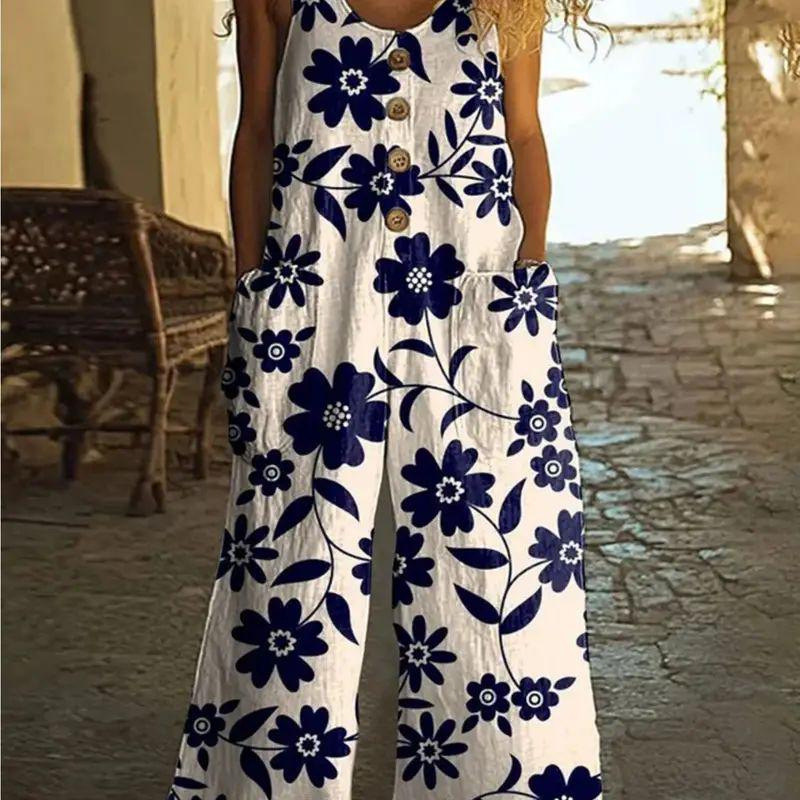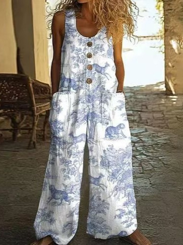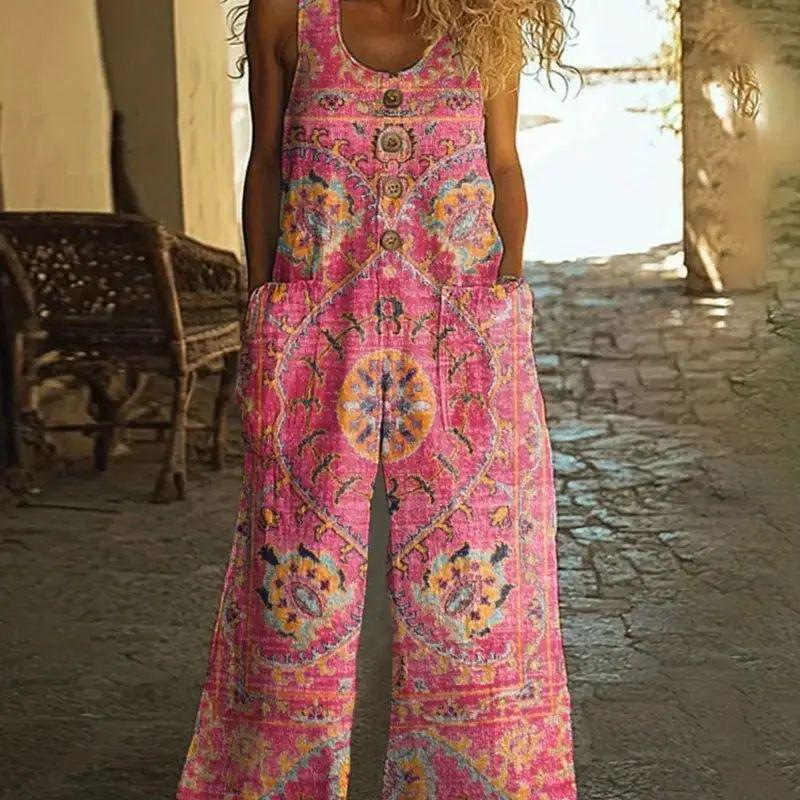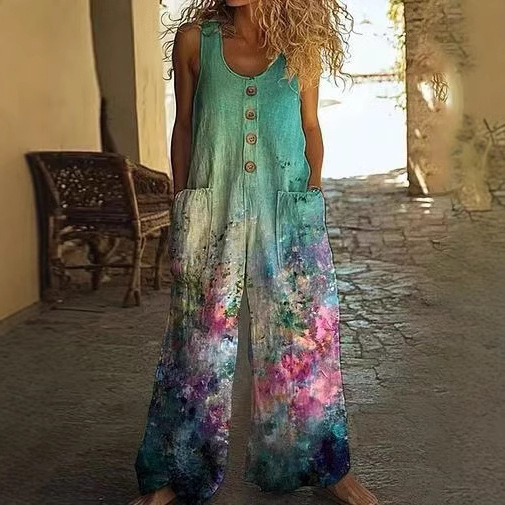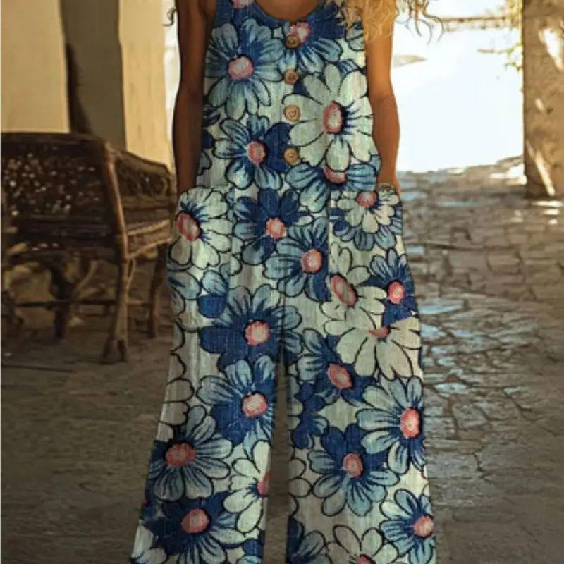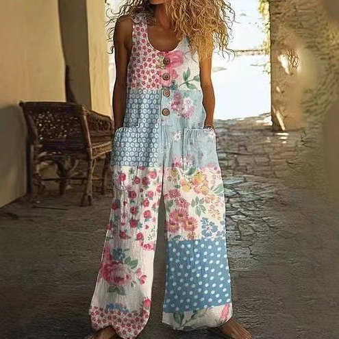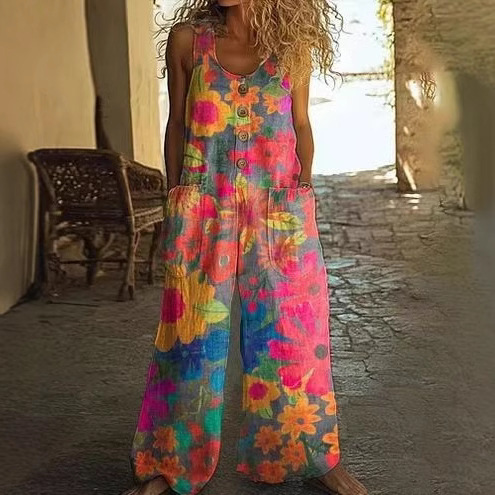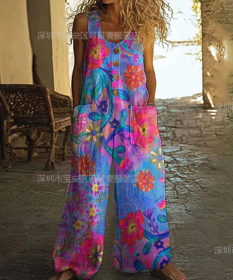 Кросс-бордерная независимая станция Amazon AliExpress 2025 весна-лето печатный повседневный ретро персонализированный комбинезон с принтом