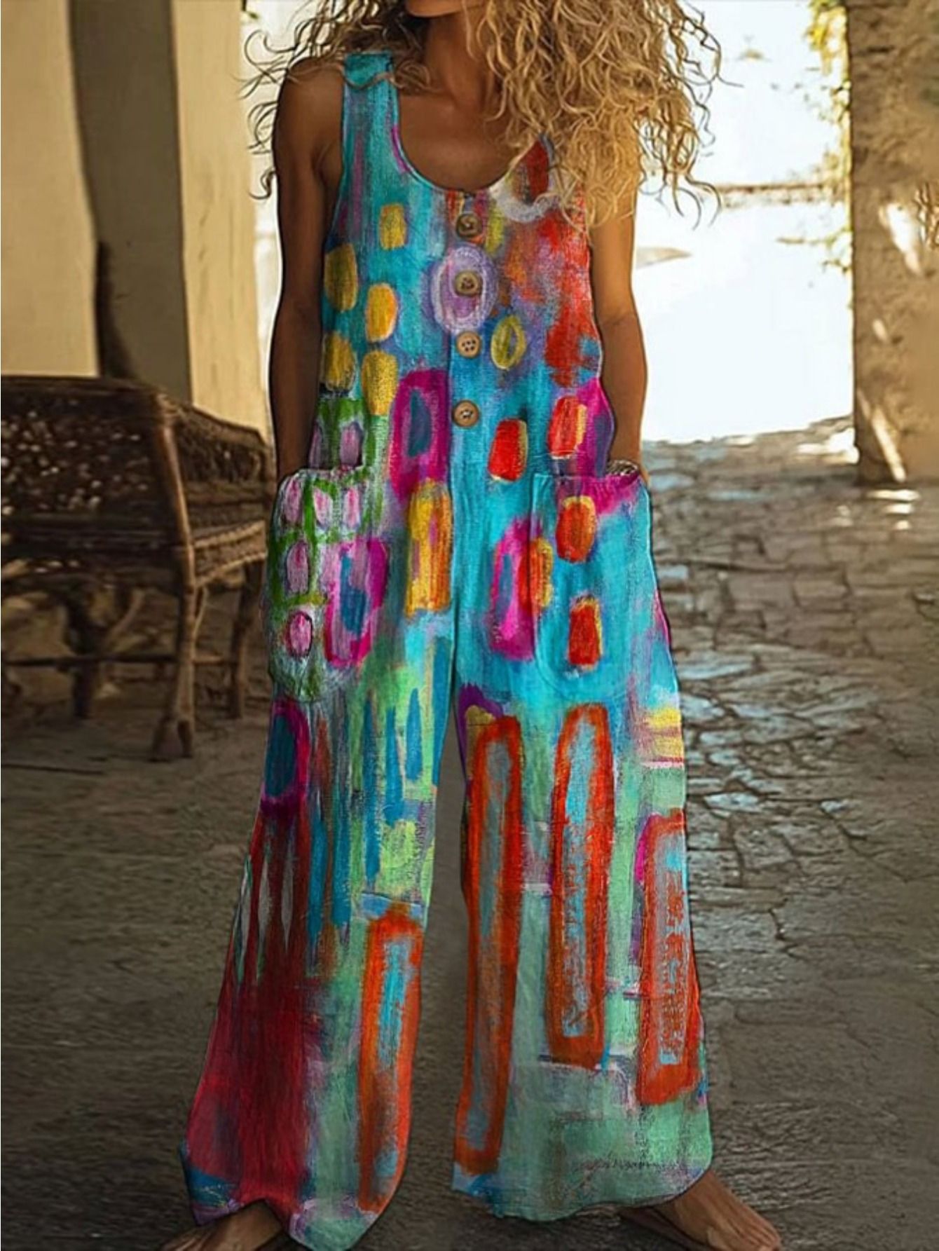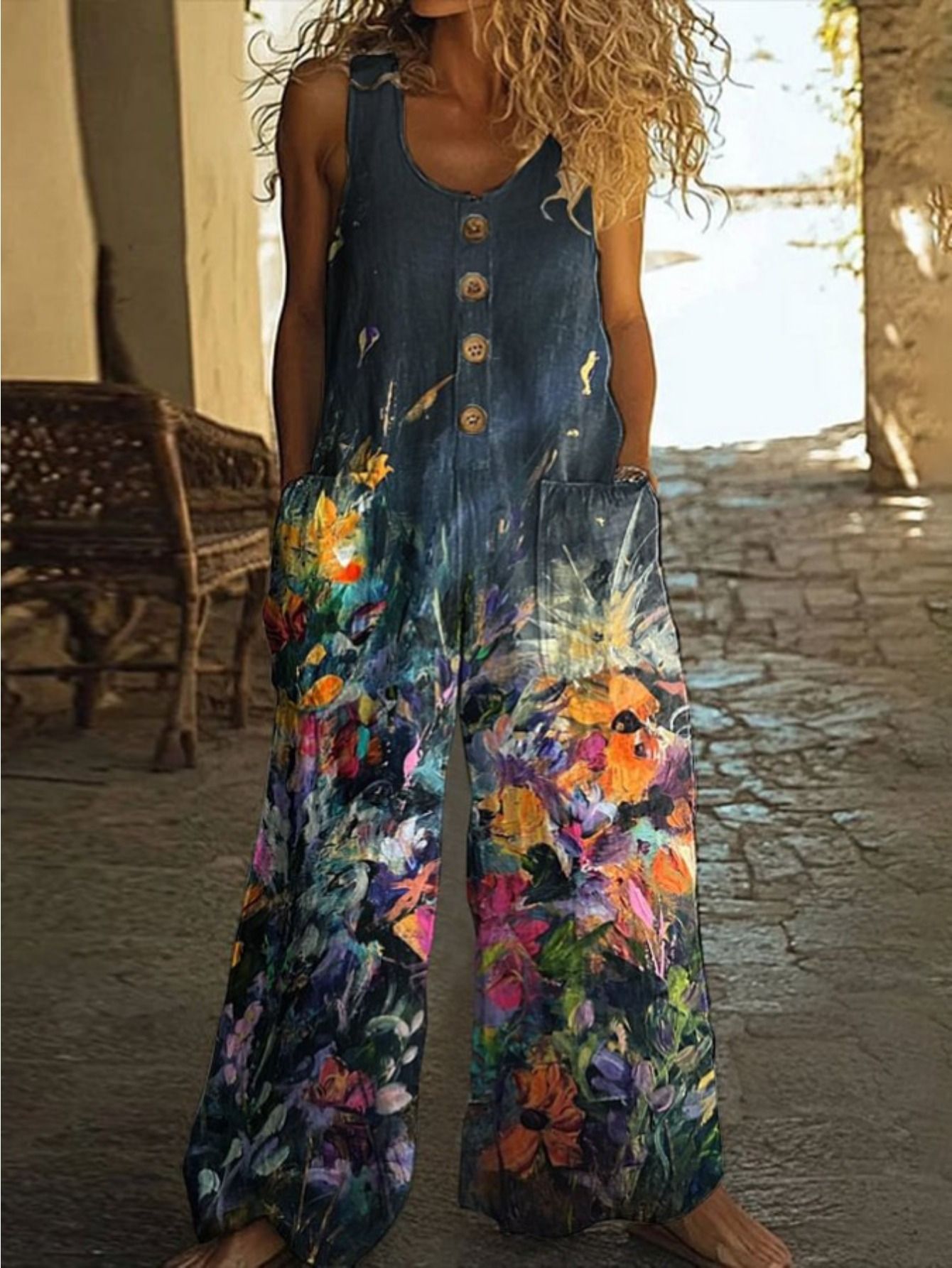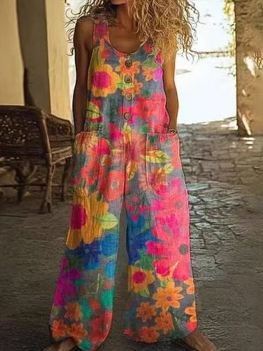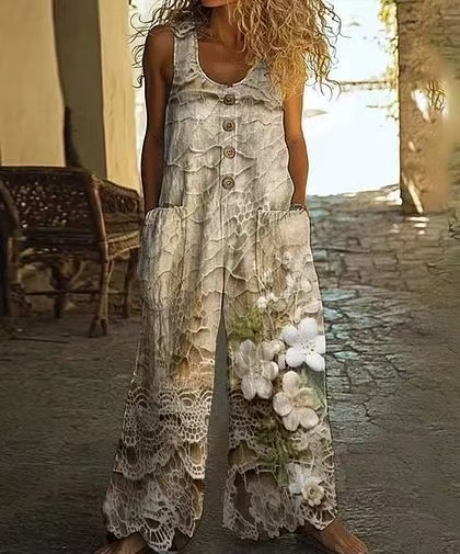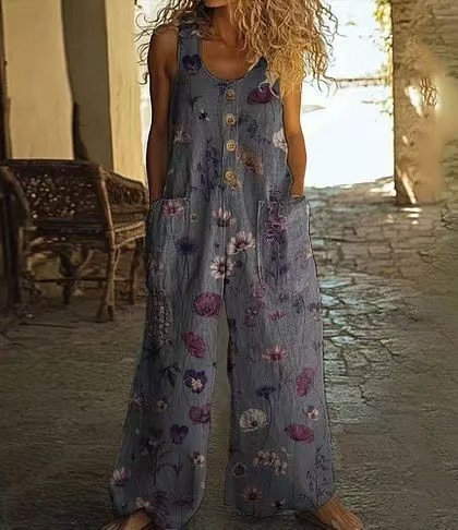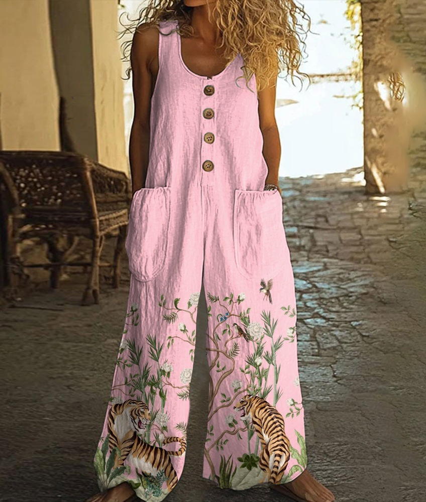 Кросс-бордерная независимая станция Amazon AliExpress 2025 весна-лето печатный повседневный ретро персонализированный комбинезон с принтом