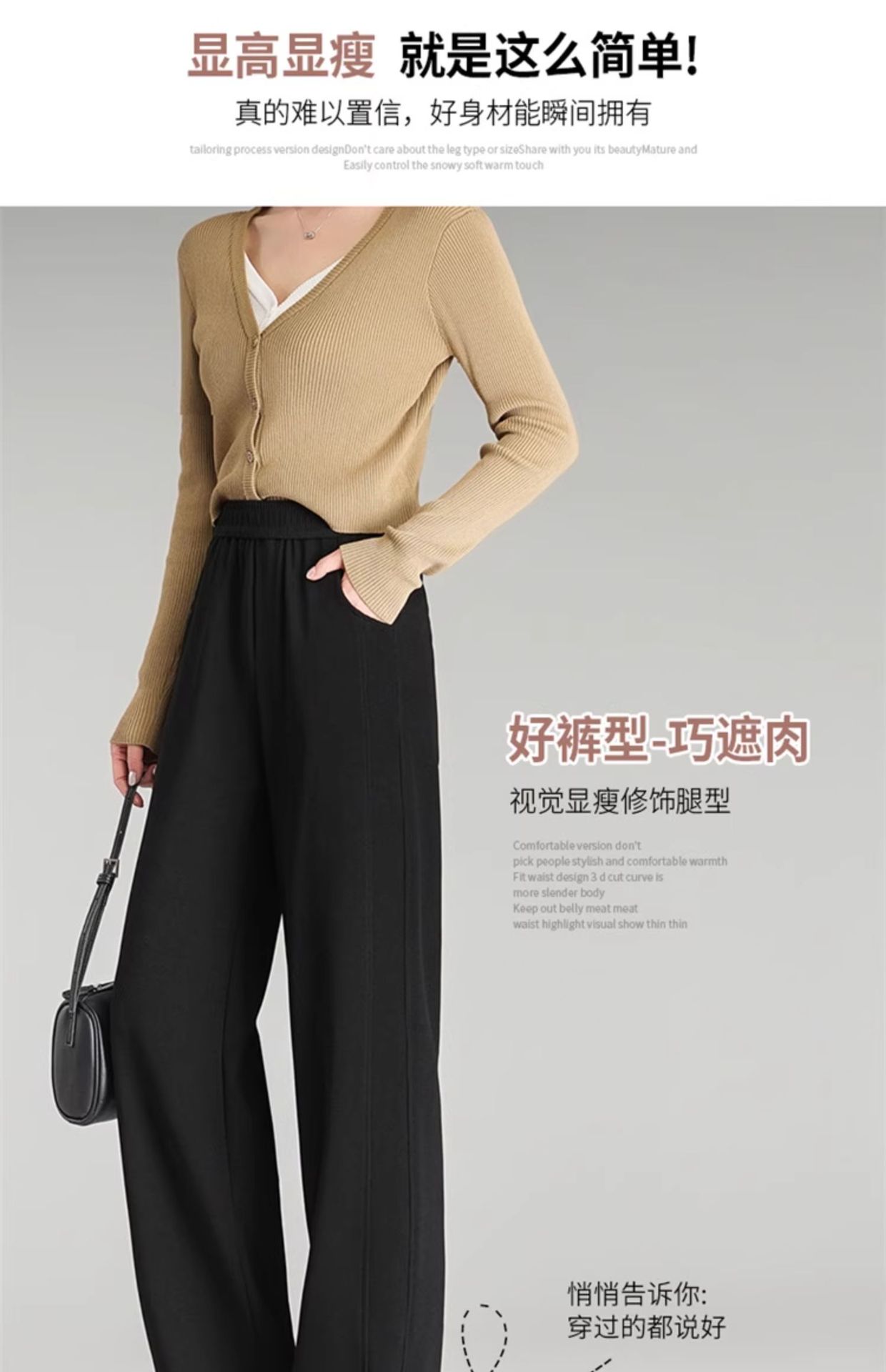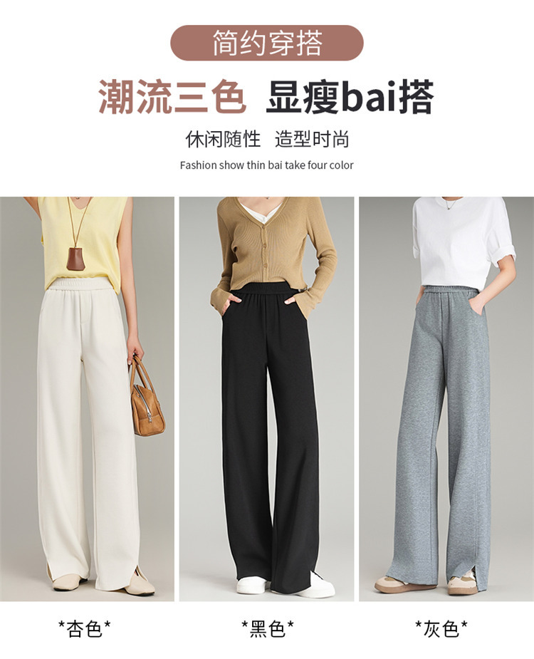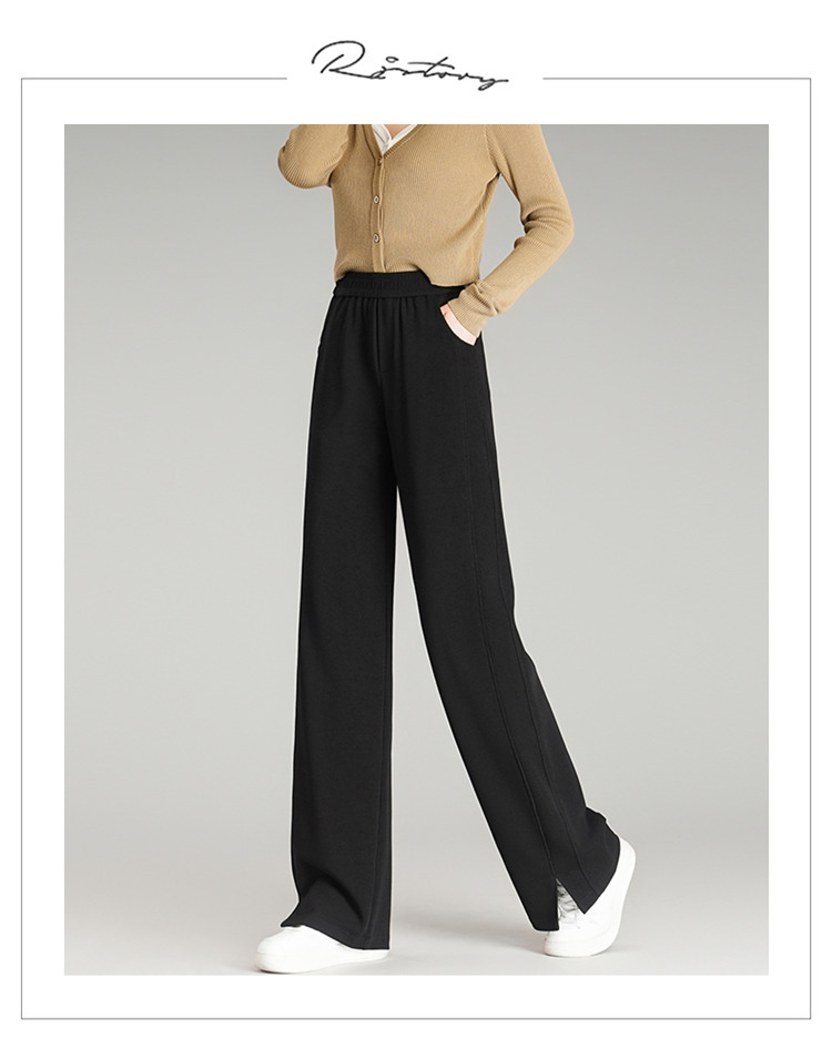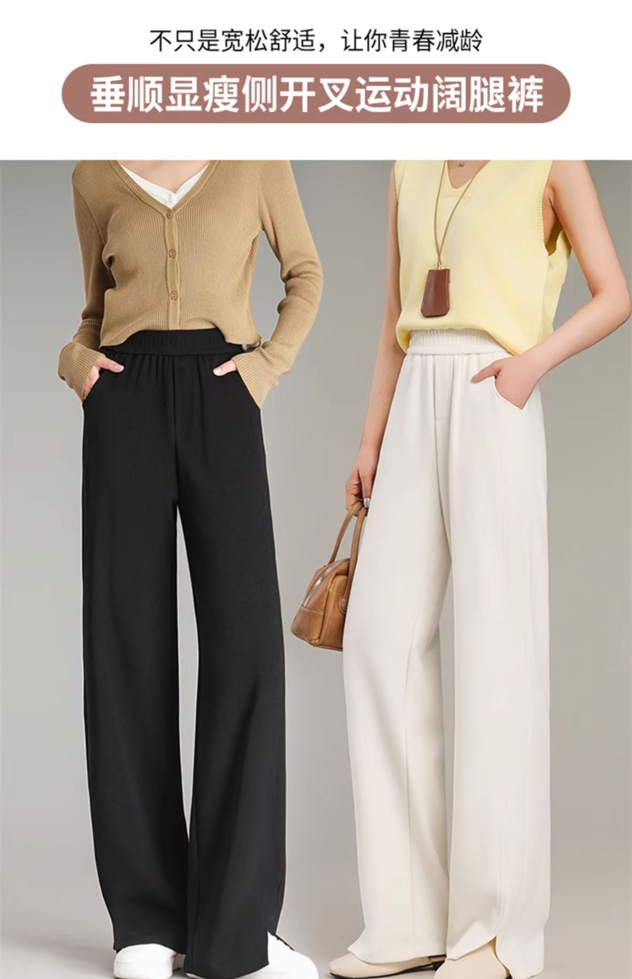 Широкие брюки с открытыми вилками женские весна и осень лето 2025 новый узкий выпуск тонких с высокой талией свободные повседневные прямые брюки