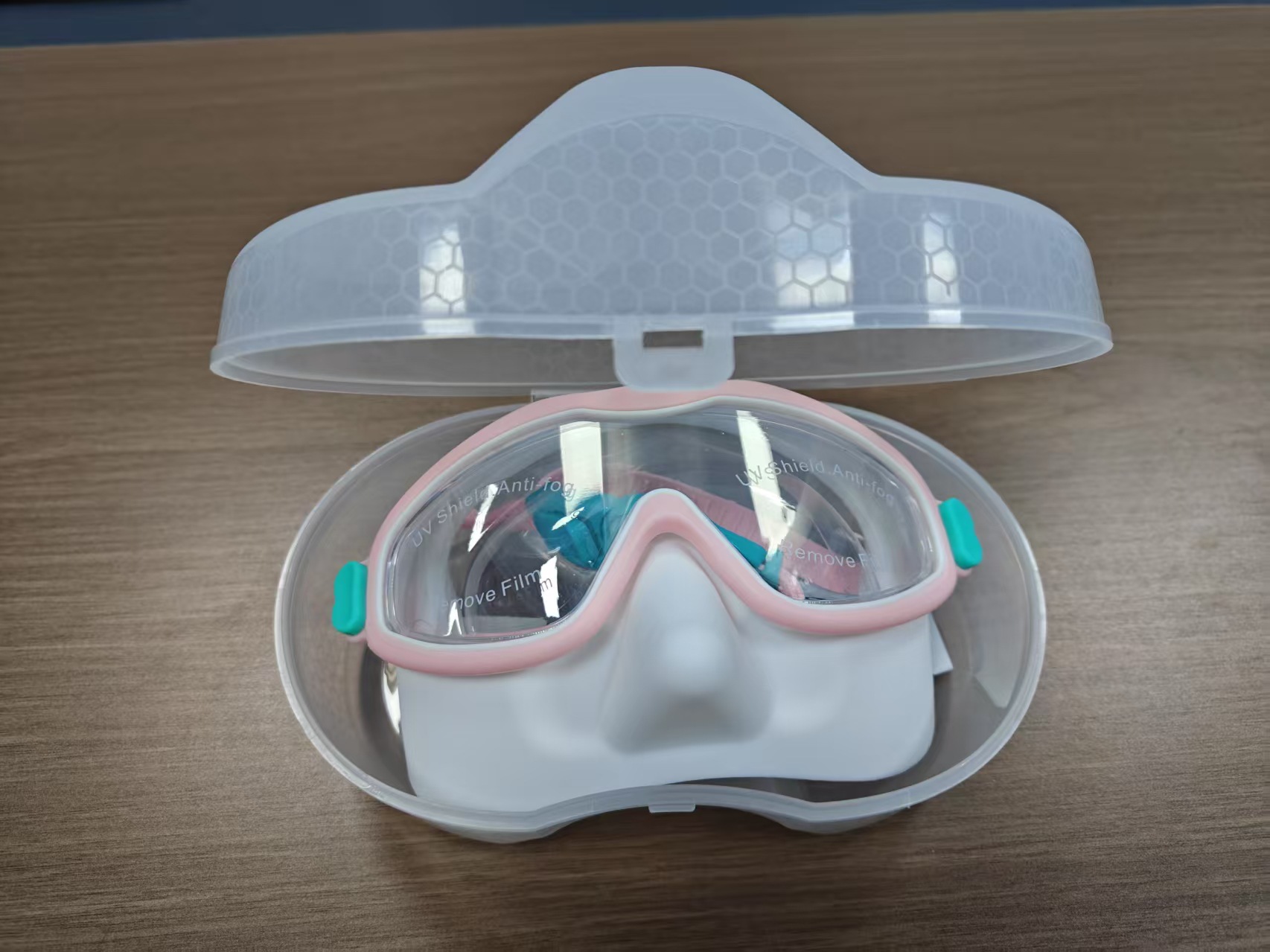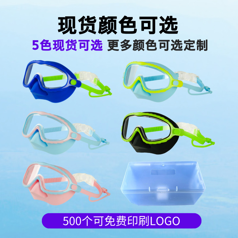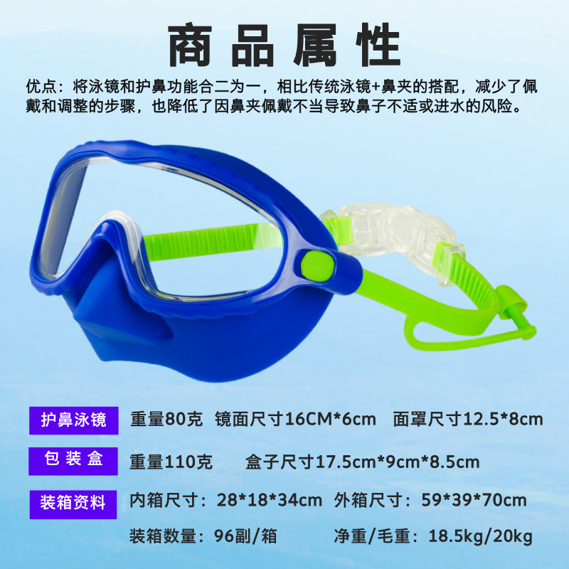新款卡通防水防雾大框专业儿童泳镜护鼻一体带耳塞硅胶游泳眼镜