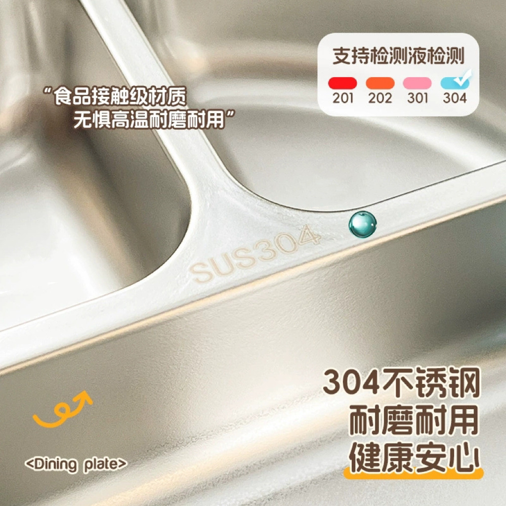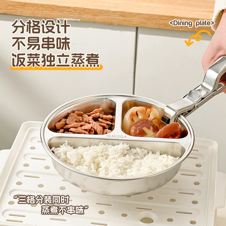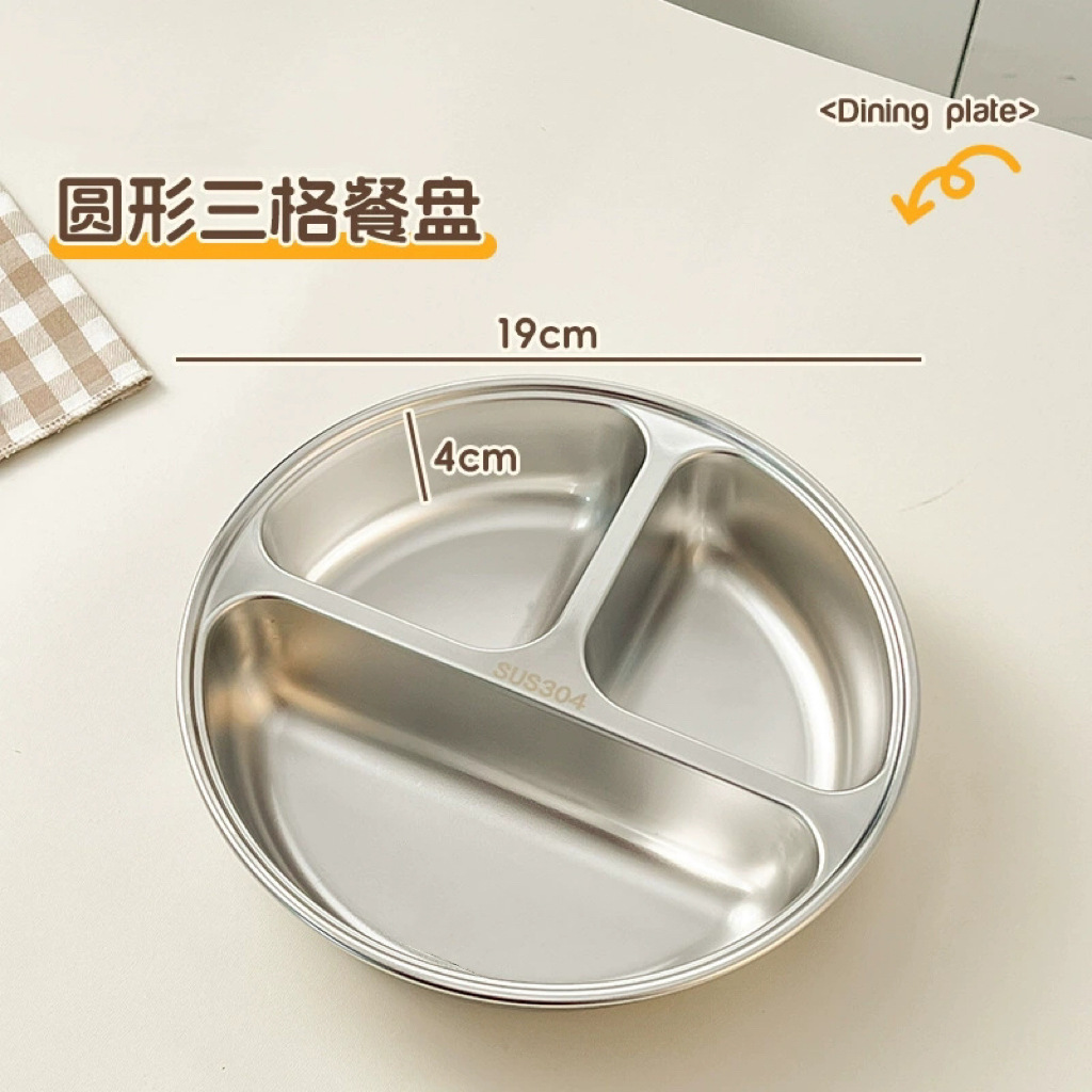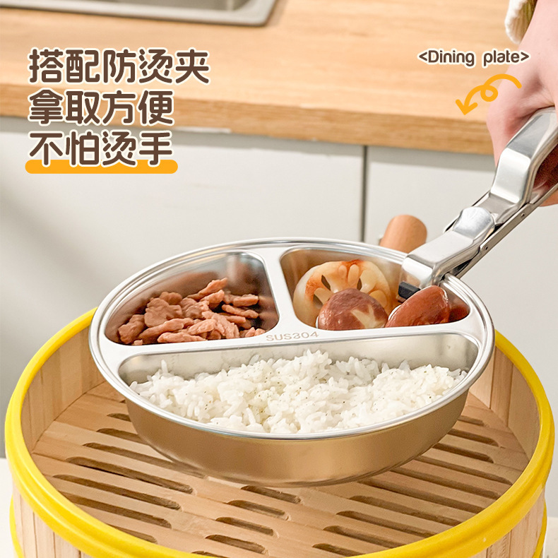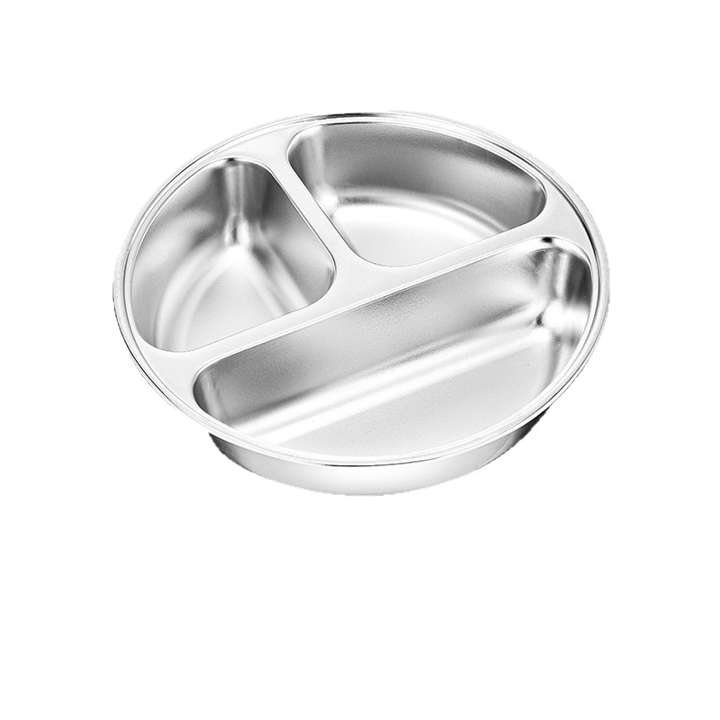 Temu трансграничная прямая продажа, круглая тарелка из нержавеющей стали 304 с тремя отделениями, углубленная тарелка для студенческого питания, детская тарелка для еды, количественная тарелка