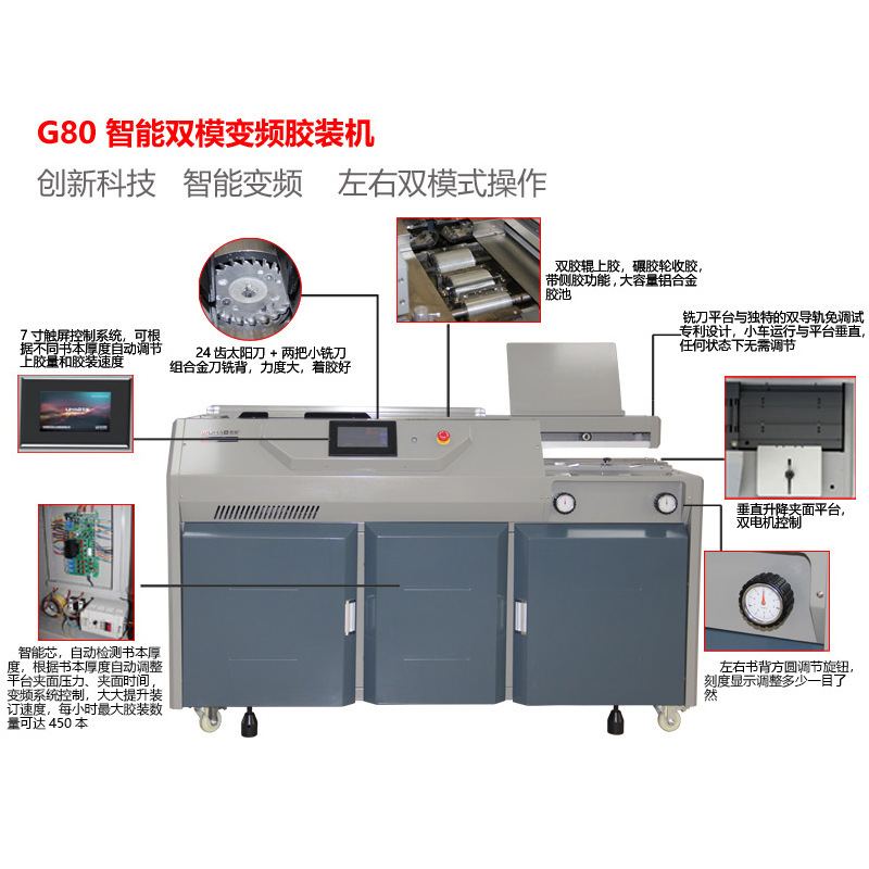 G80 Интеллектуальная двухрежимная машина для переплета книг с переменной частотой A3A4 Полностью автоматическая машина для беспроводного клеевого переплета Графическая и текстовая машина для переплета печатной фабрики
