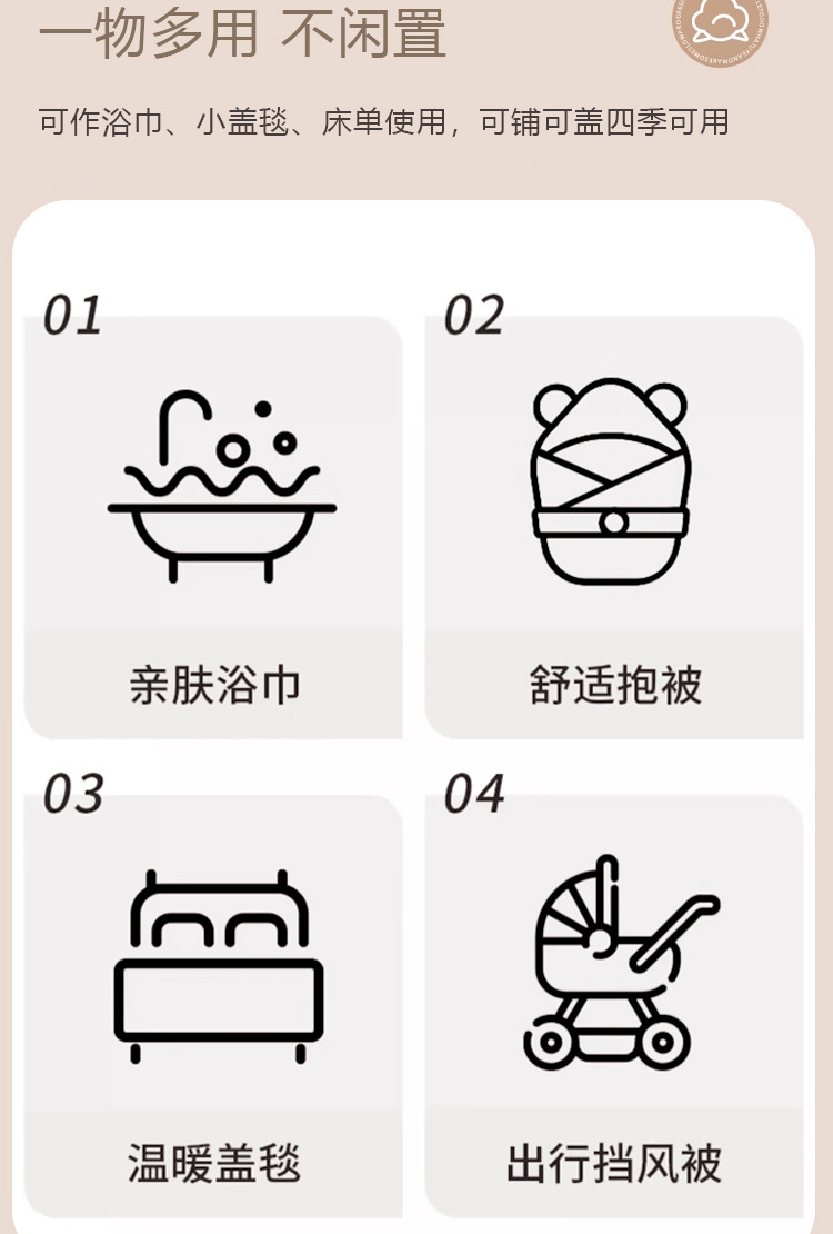 一巾多用,四季皆宜可做浴巾、包巾、盖毯等使用