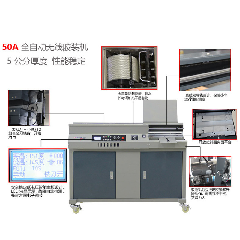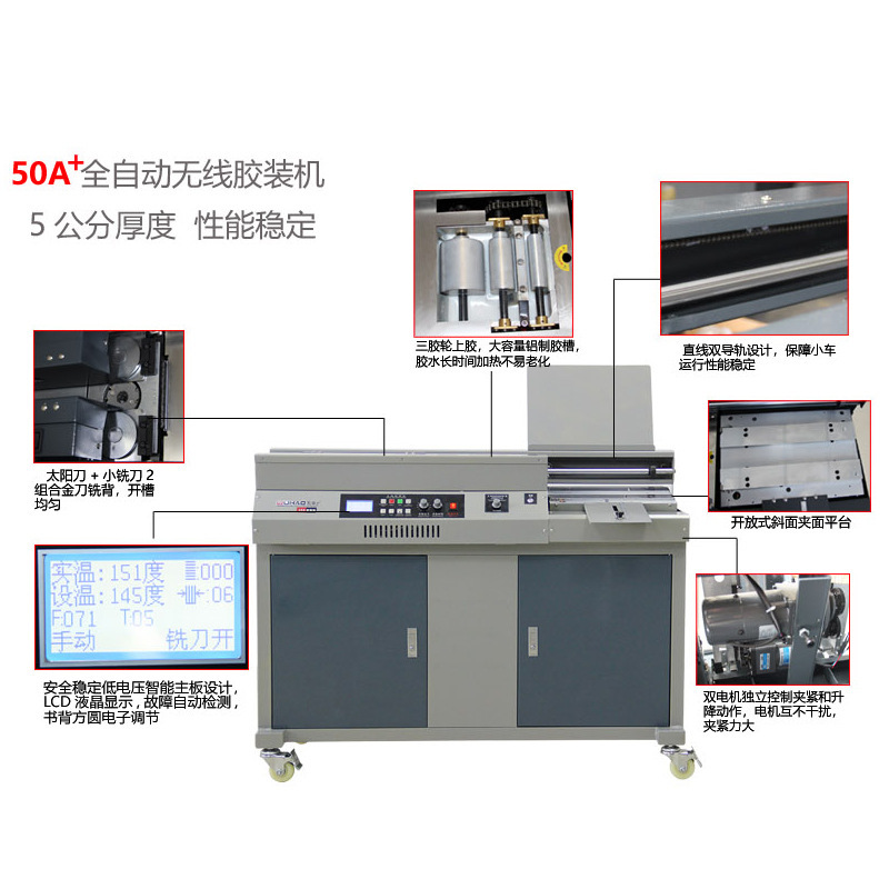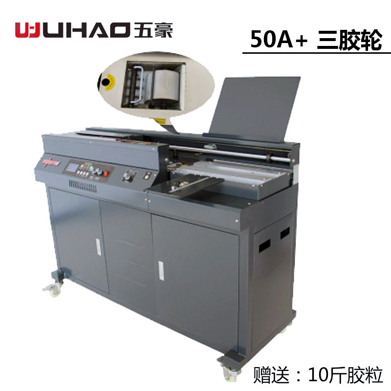 Wuhao 50A полностью автоматическая беспроводная машина для переплета клеем, три клеевых колеса, машина для переплета текста, машина для переплета книг, машина для обертывания краев
