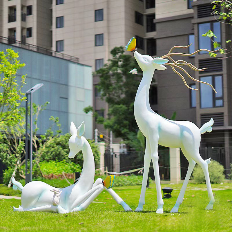 Индивидуальная стеклопластиковая ландшафтная скульптура: мультяшный олень для витрин торговых центров, уличных выставок, декоративная фигурка, объемный элемент декора IP