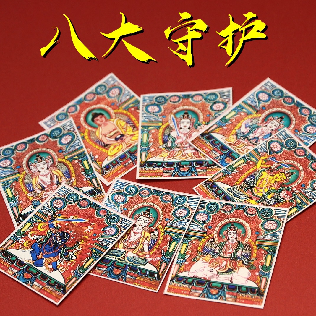 Тибетские картины тангка с восемью покровительными божествами, различные темы, оптом, с возможностью индивидуального заказа, ручная роспись с золотыми элементами.