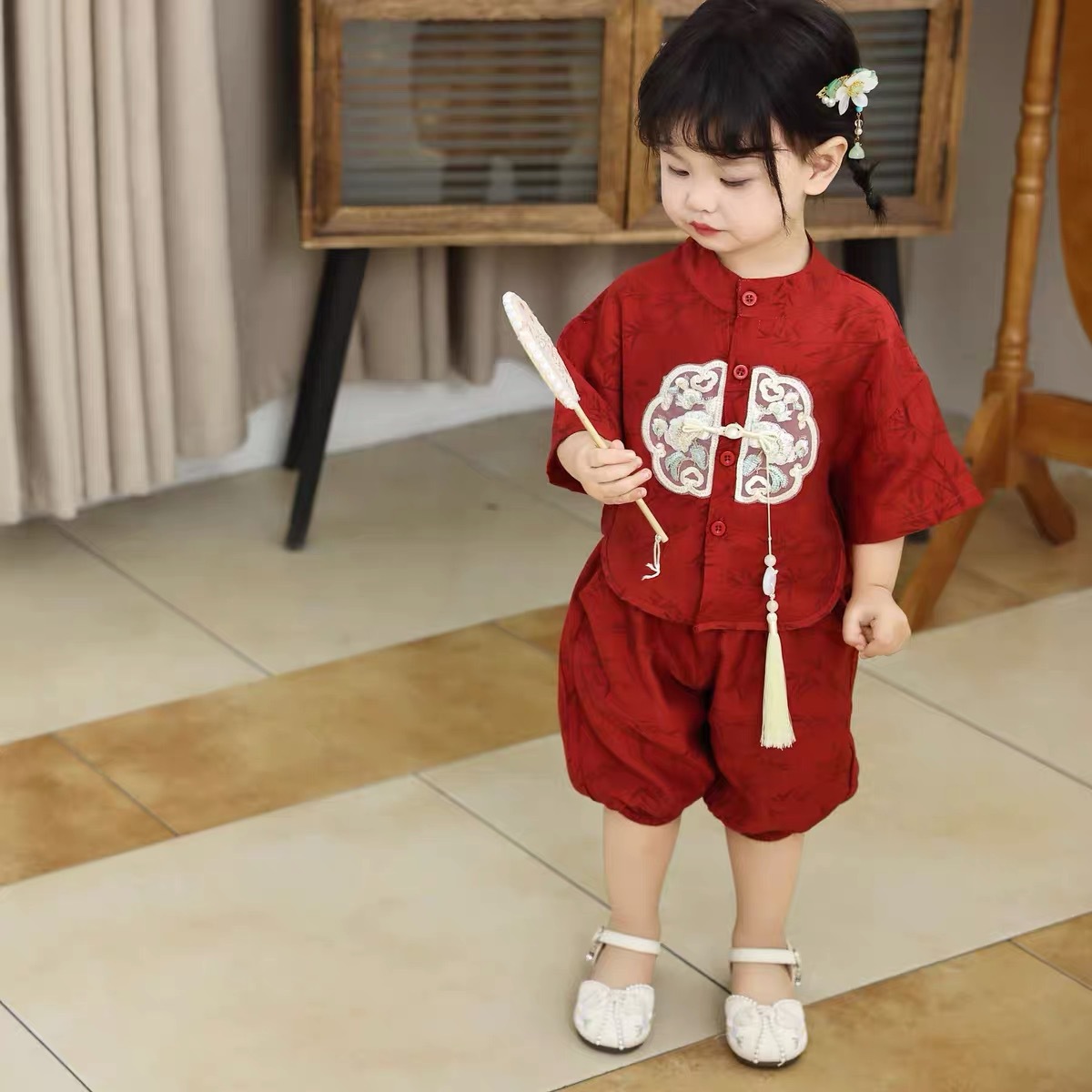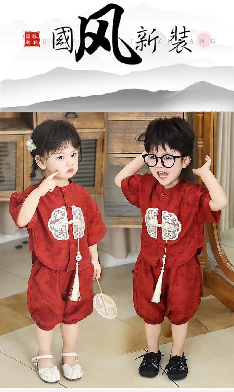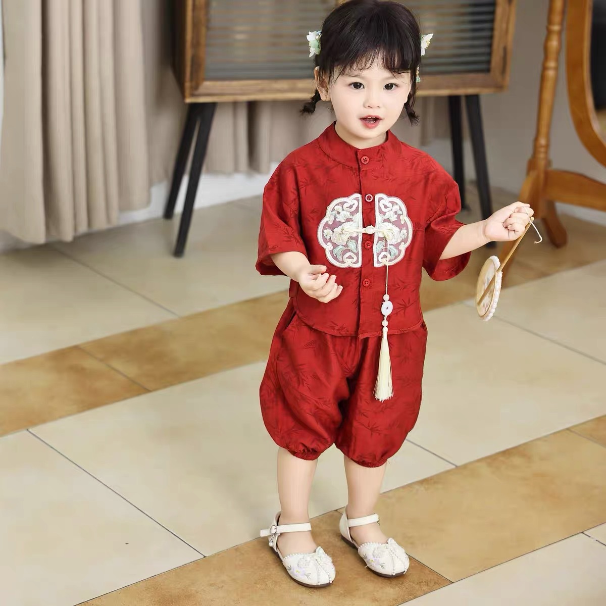 Детский китайский костюм из двух частей новый мальчик Тан костюм для девочек летний костюм летний национальный стиль с короткими рукавами Hanfu ребенок