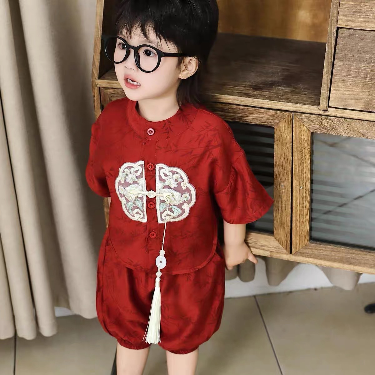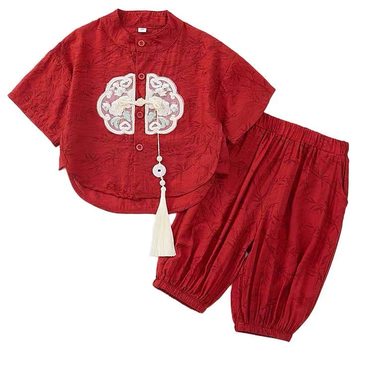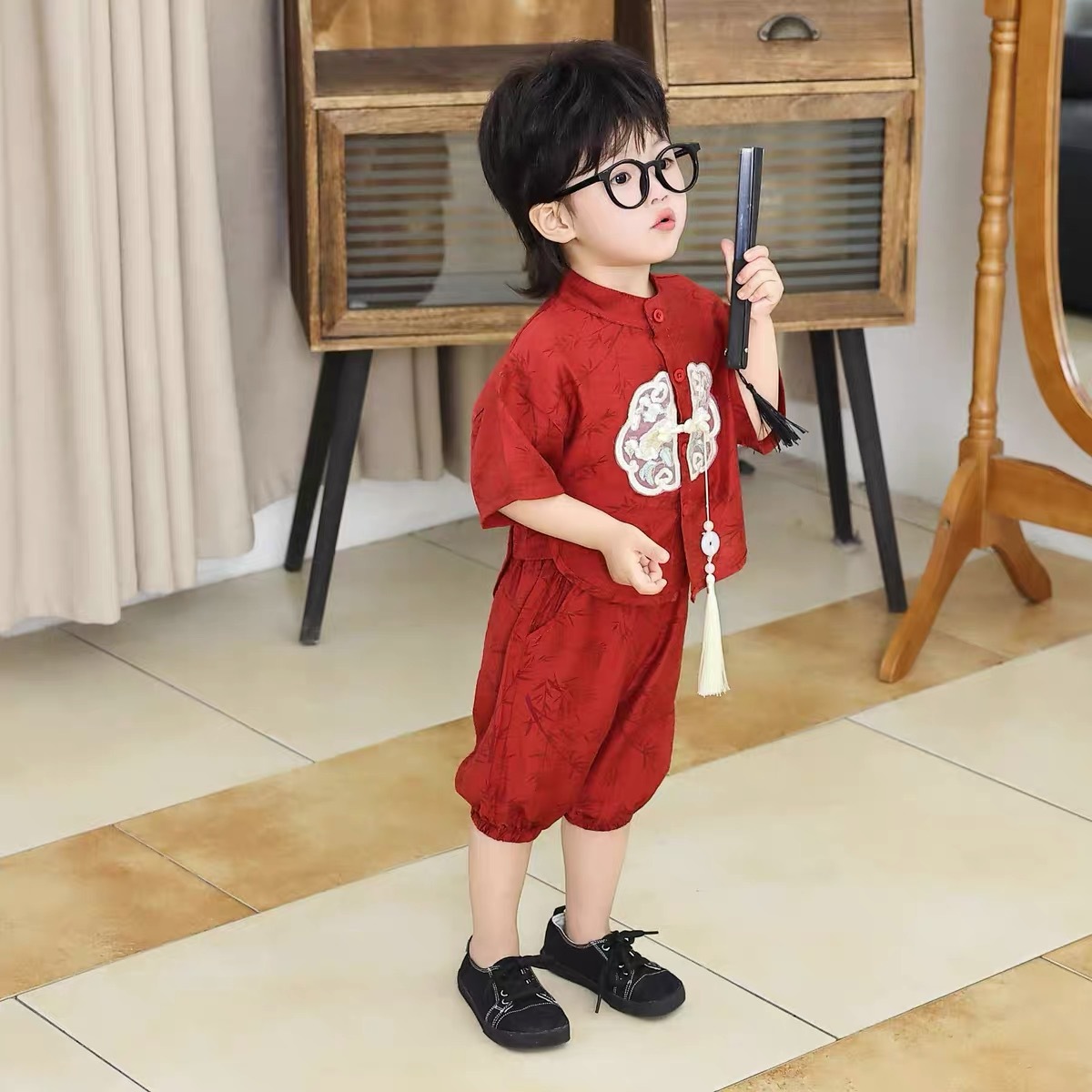Детский китайский костюм из двух частей новый мальчик Тан костюм для девочек летний костюм летний национальный стиль с короткими рукавами Hanfu ребенок