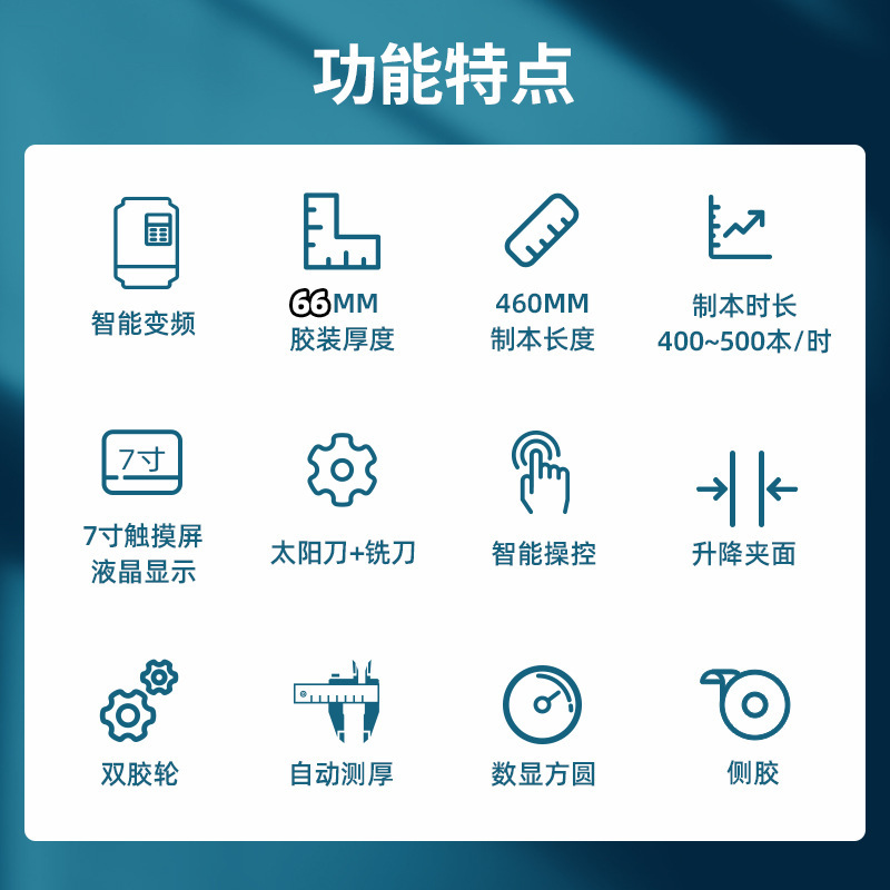 E63A3ZS клеевая переплетная толщина 63 мм, двойное резиновое колесо, боковой клей; E66A3BZS клеевая связка толщиной 66 мм, двойное резиновое колесо, интеллектуальное преобразование частоты; SC70A3BZS клеевая связка толщиной 70 мм, три резиновых колеса, интеллектуальное преобразование частоты