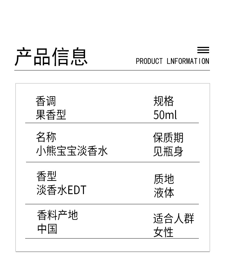 Производитель парфюмерии 50 мл Детские духи Little Bear Baby, аромат для малышей, поддерживает OEM-производство, молочный аромат, долговечный ODM-производство.