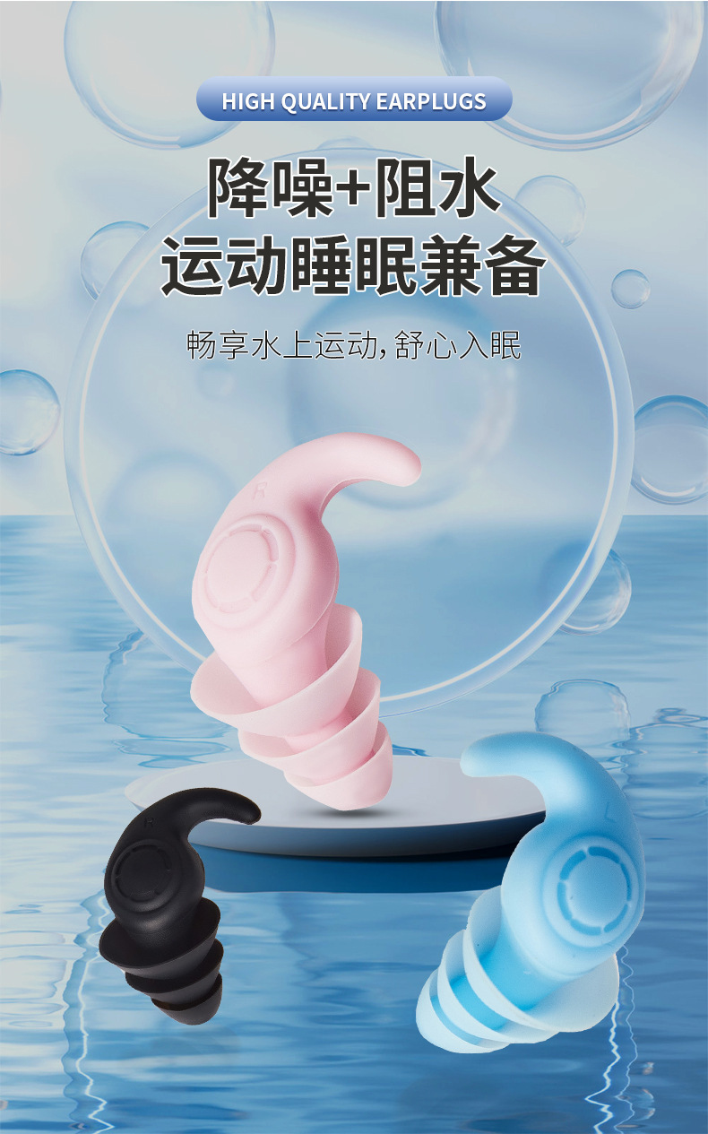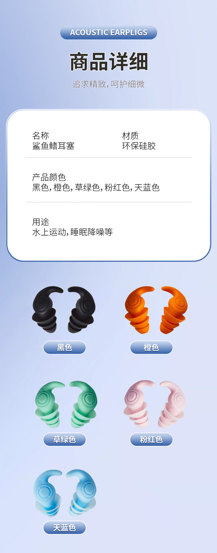 Затычки для ушей с плавником акулы, водонепроницаемые затычки для ушей для плавания, силиконовые затычки для ушей, спиральные затычки для ушей, затычки для ушей с шумопоглощением для сна, силиконовые трехслойные