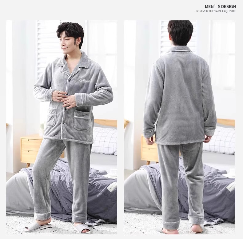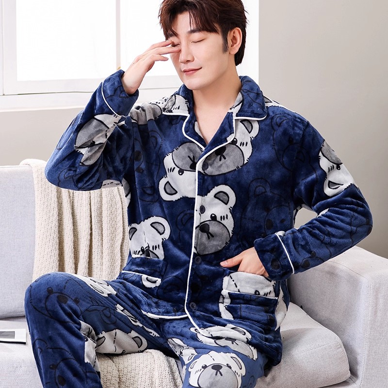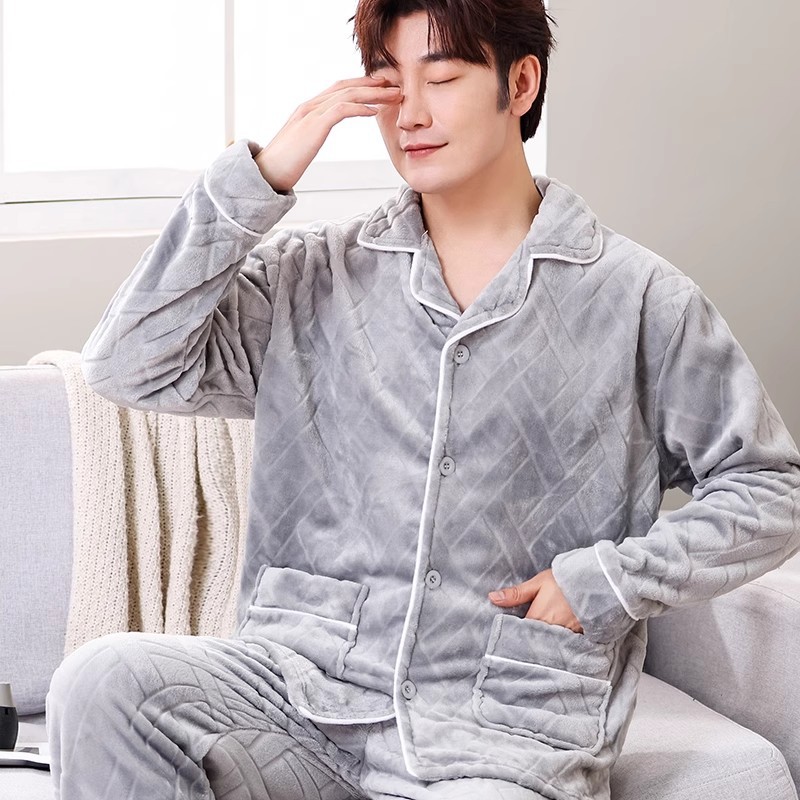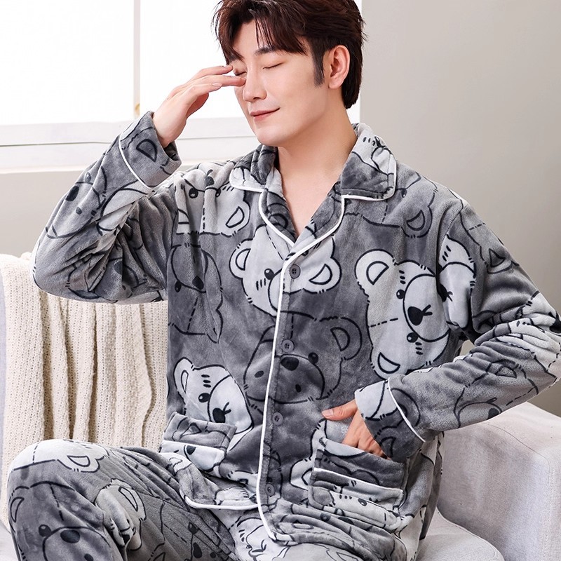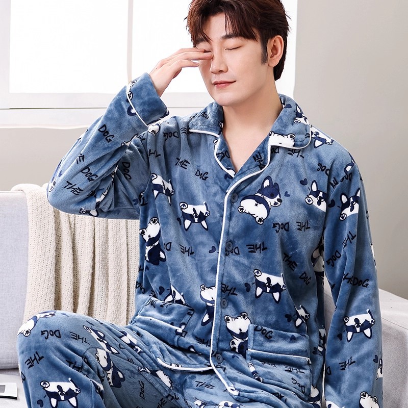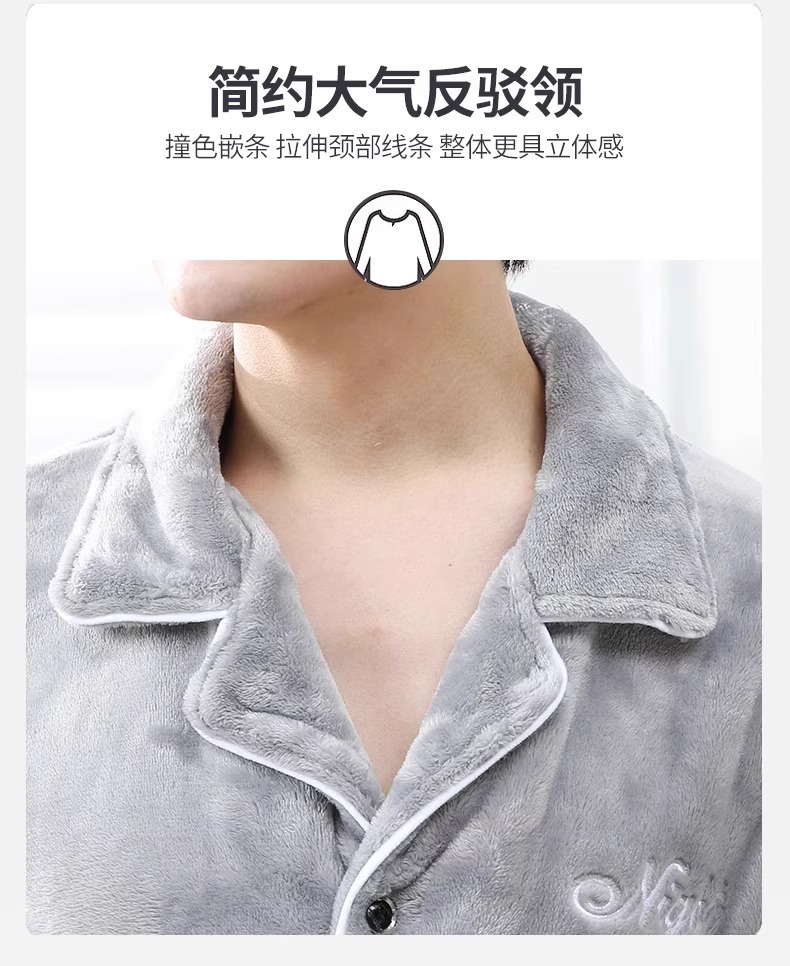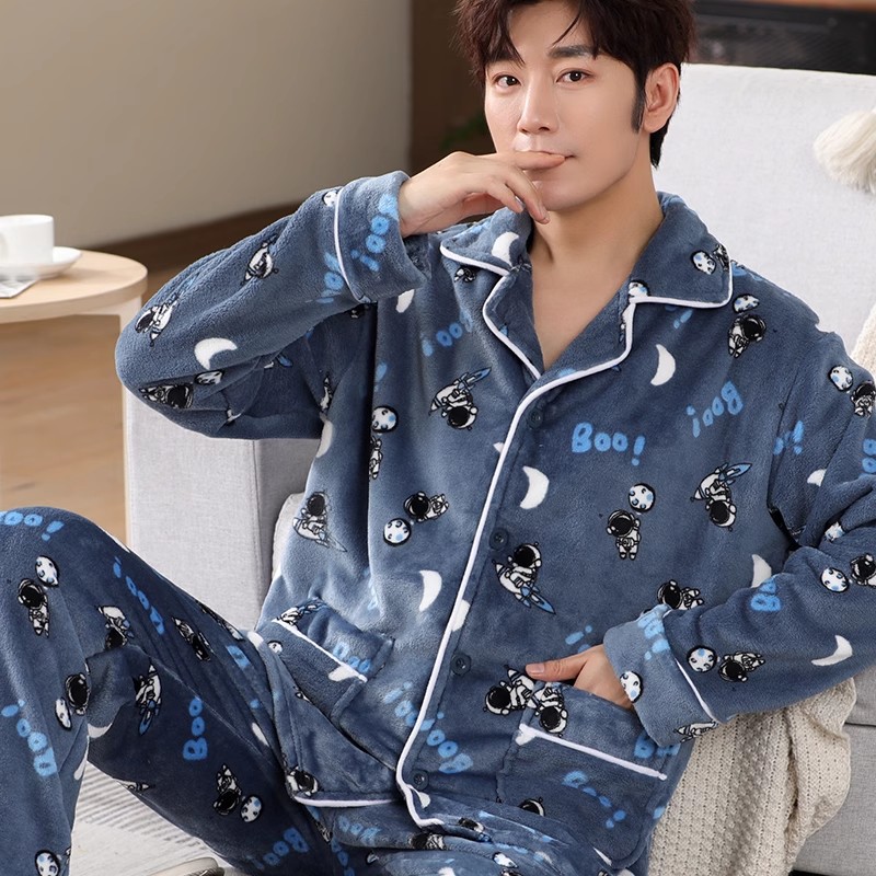 Мужская пижама, на флисовой подкладке, утолщенная, из кораллового флиса, антистатическая, с длинными рукавами, мужская фланелевая домашняя одежда, кардиган, для осени и зимы.