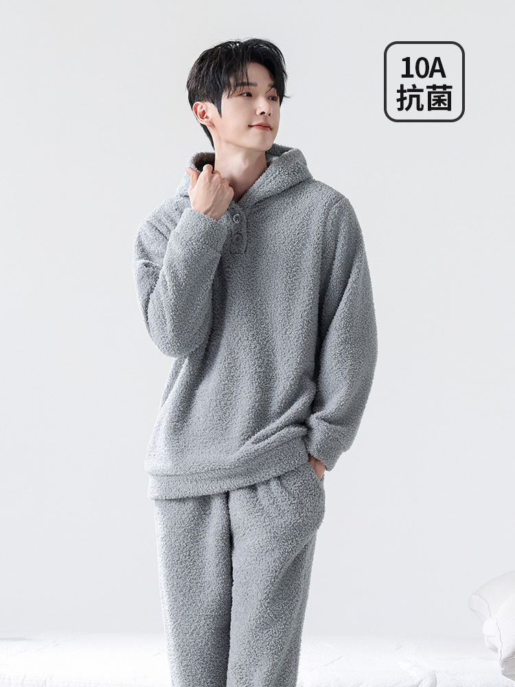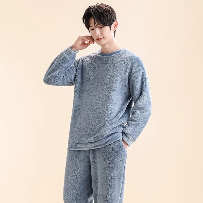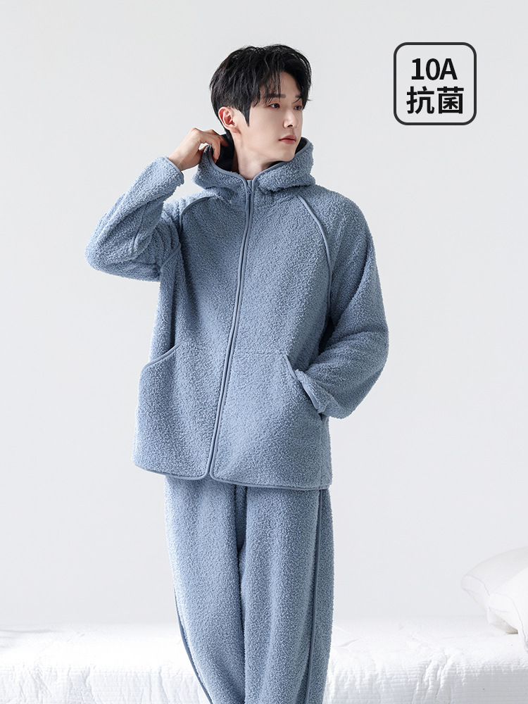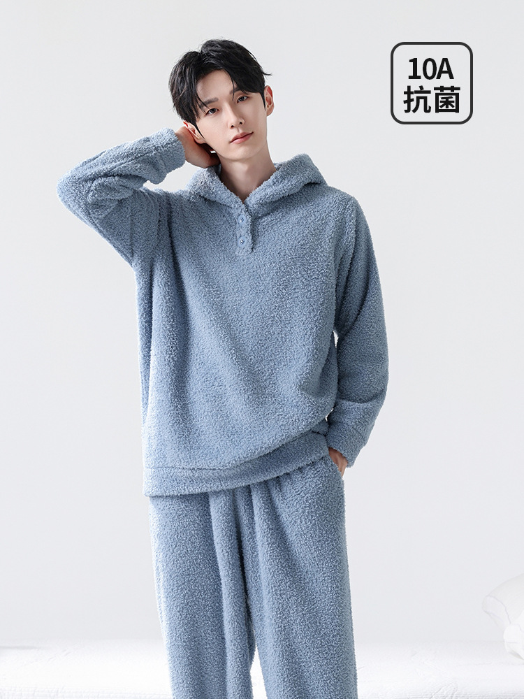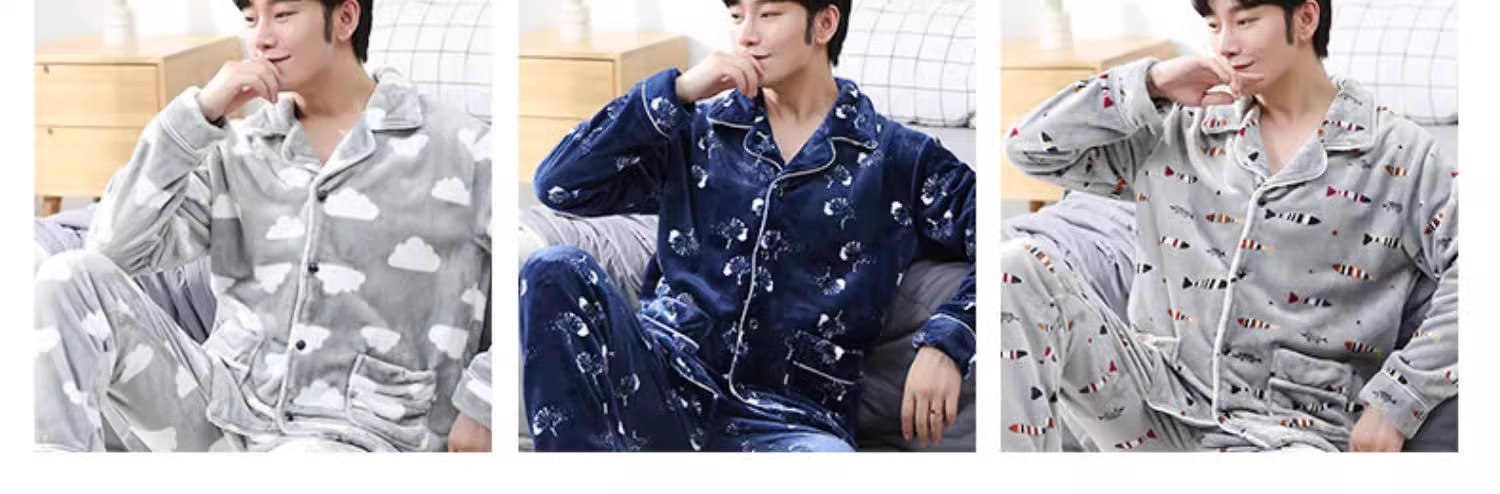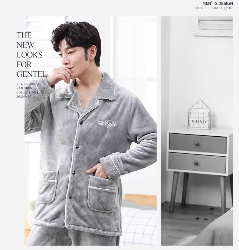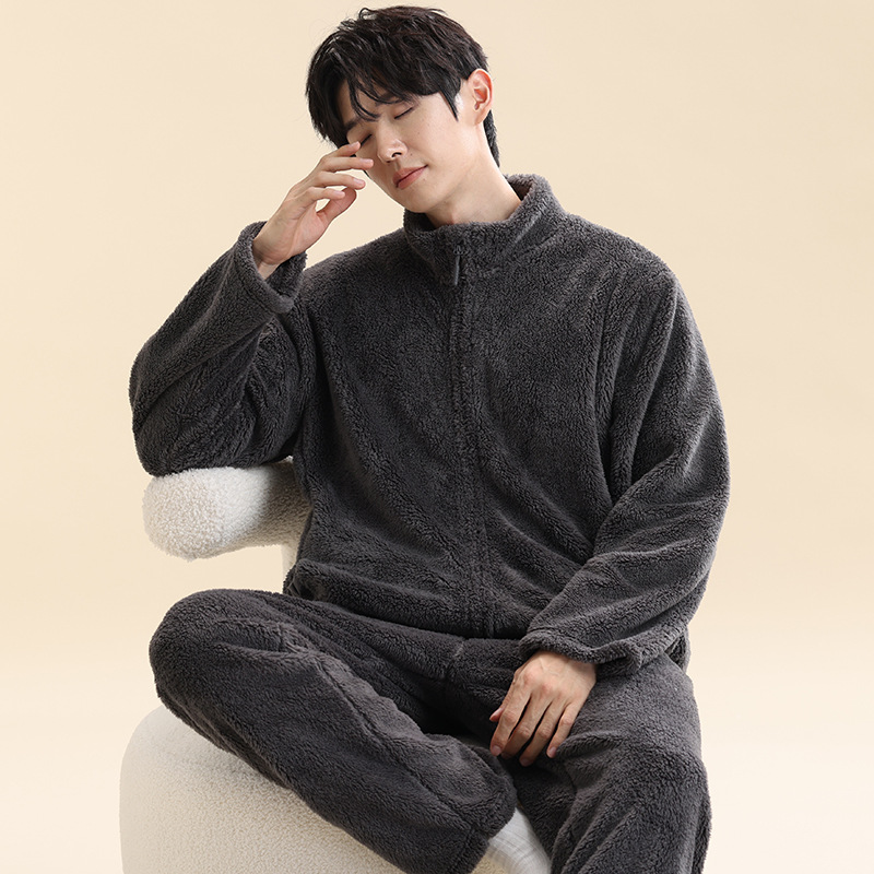 Мужская пижама, на флисовой подкладке, утолщенная, из кораллового флиса, антистатическая, с длинными рукавами, мужская фланелевая домашняя одежда, кардиган, для осени и зимы.