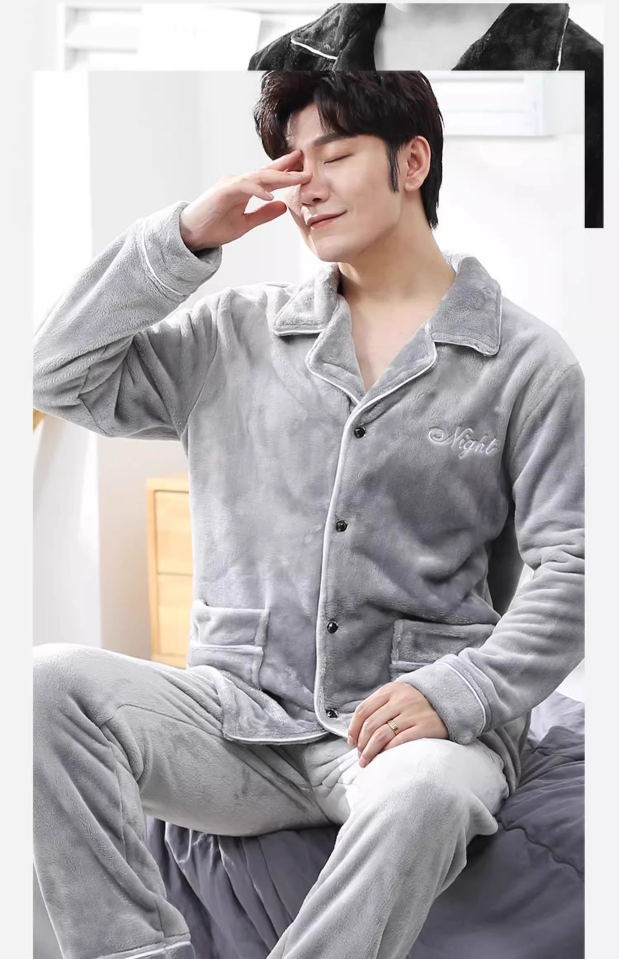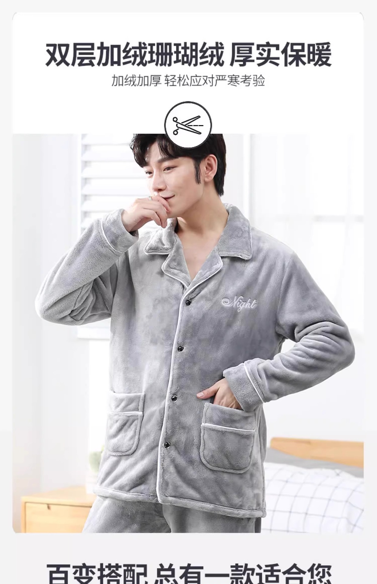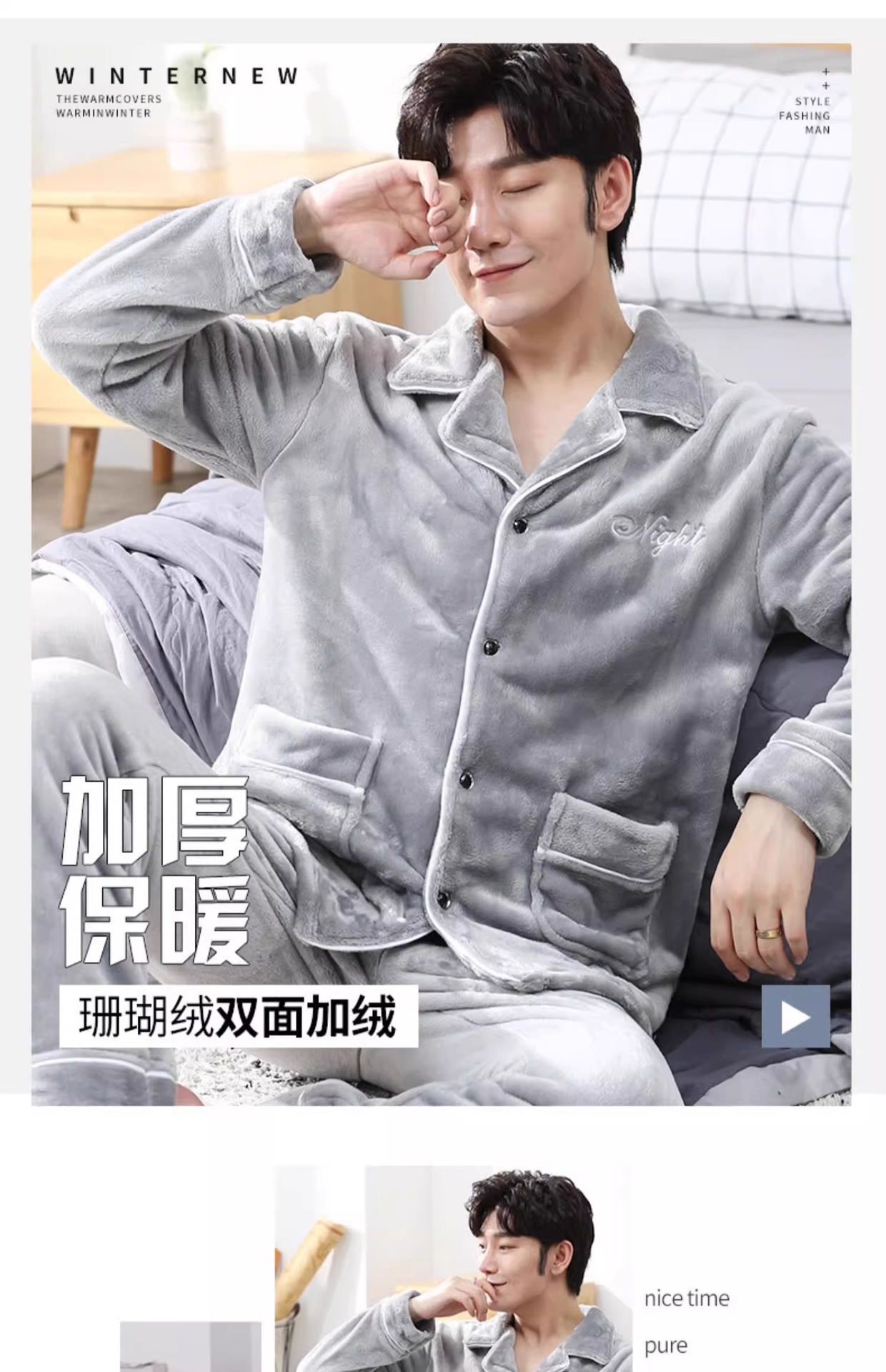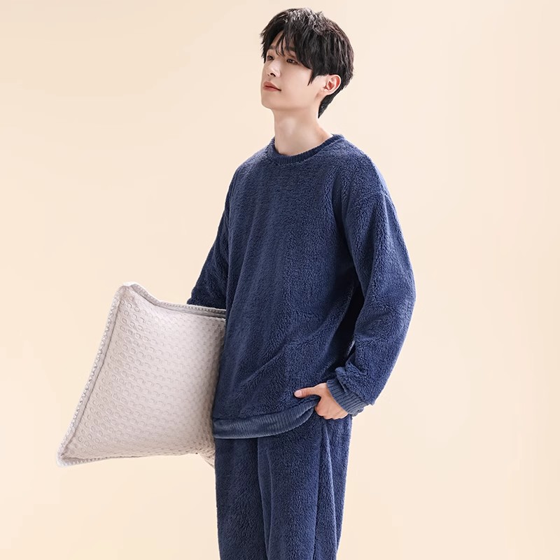 Мужская пижама, на флисовой подкладке, утолщенная, из кораллового флиса, антистатическая, с длинными рукавами, мужская фланелевая домашняя одежда, кардиган, для осени и зимы.