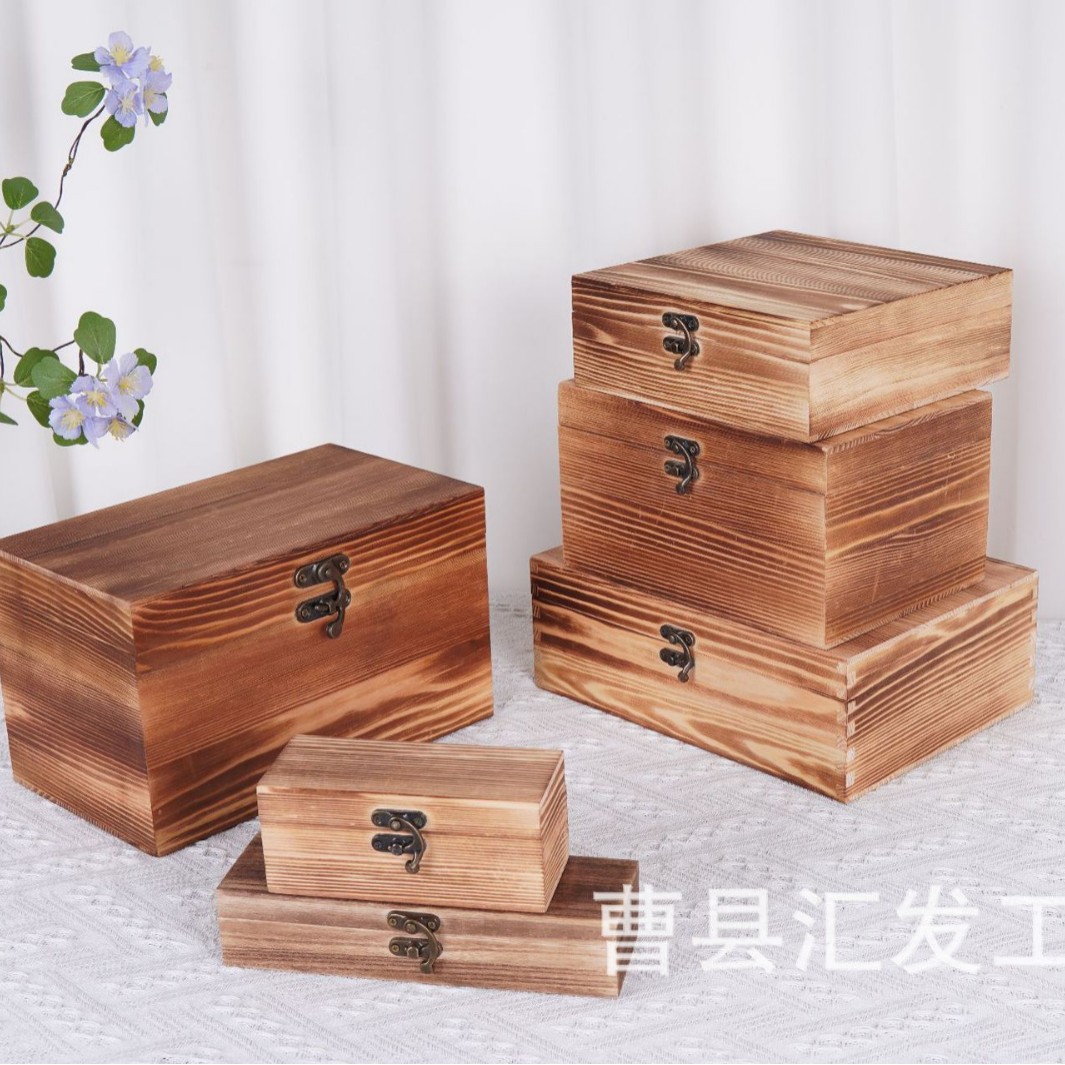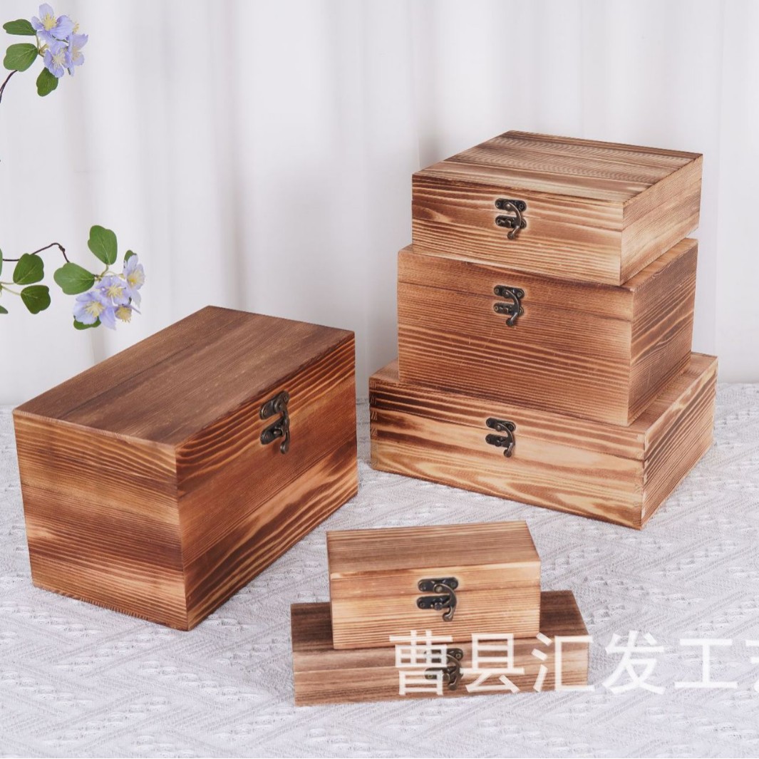 Винтажная деревянная коробка в наличии, прямоугольная деревянная коробка из сосны для хранения и упаковки виски и бокалов, деревянная коробка с откидной крышкой.
