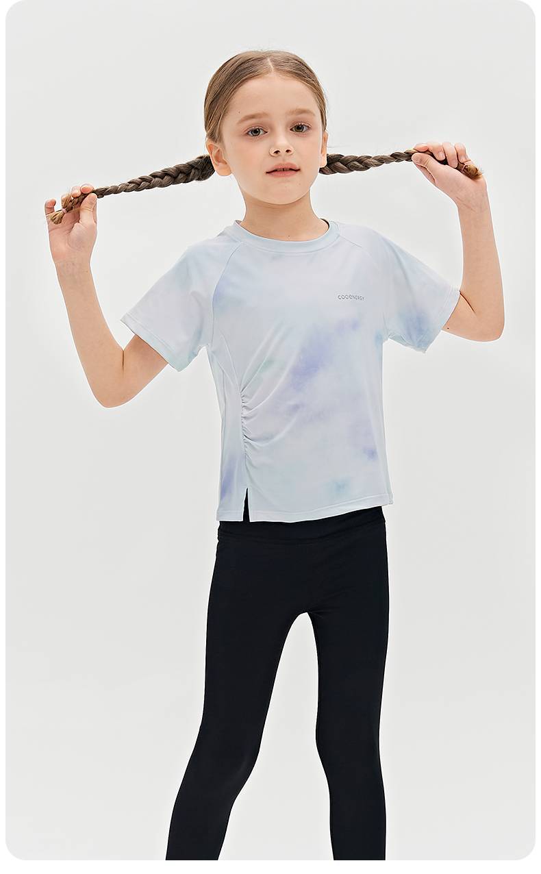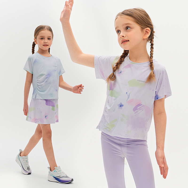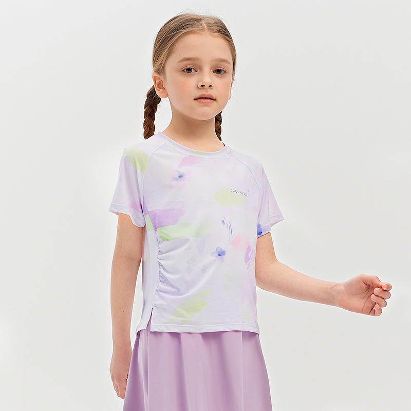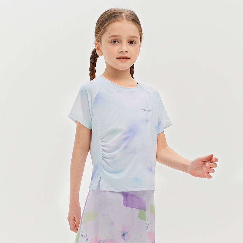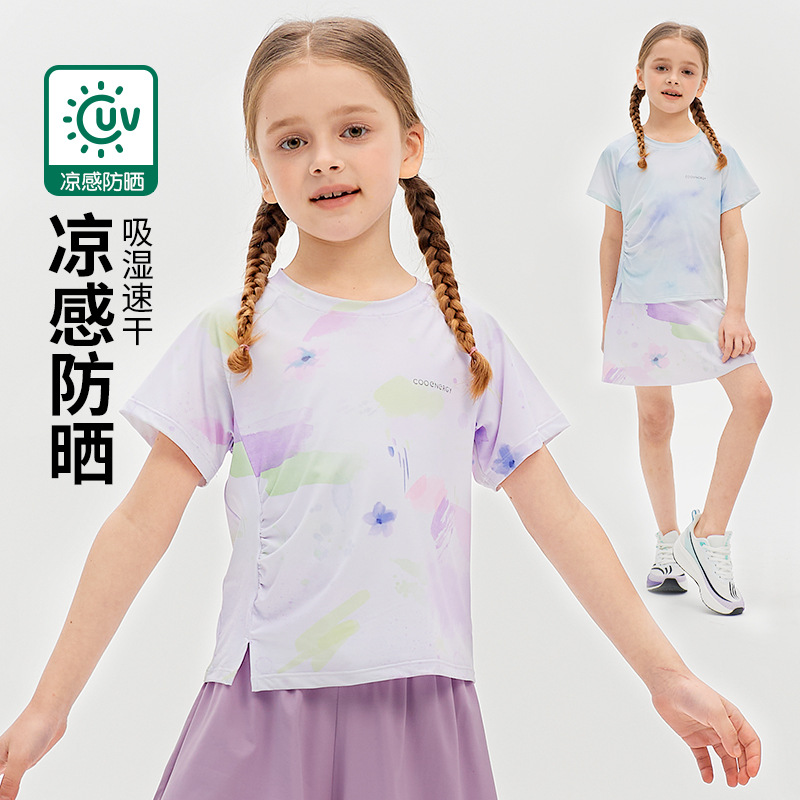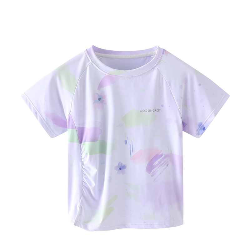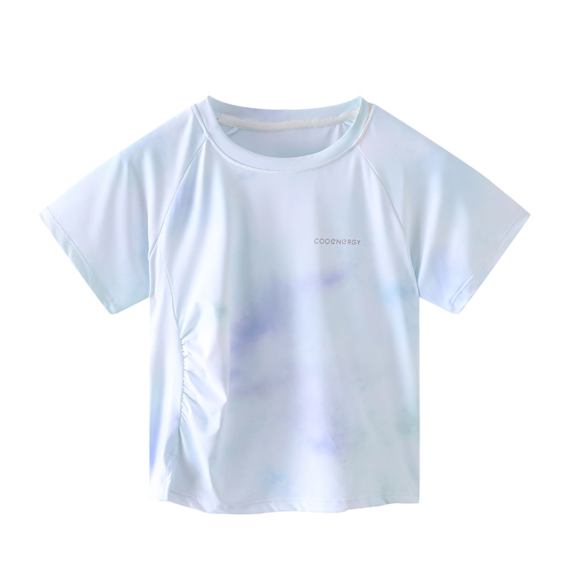 Футболка для девочек, летняя, средняя и большая, детский солнцезащитный топ с принтом «ласточкин хвост», уличный персонализированный спортивный быстросохнущий спортивный топ с короткими рукавами и складками