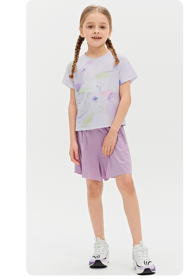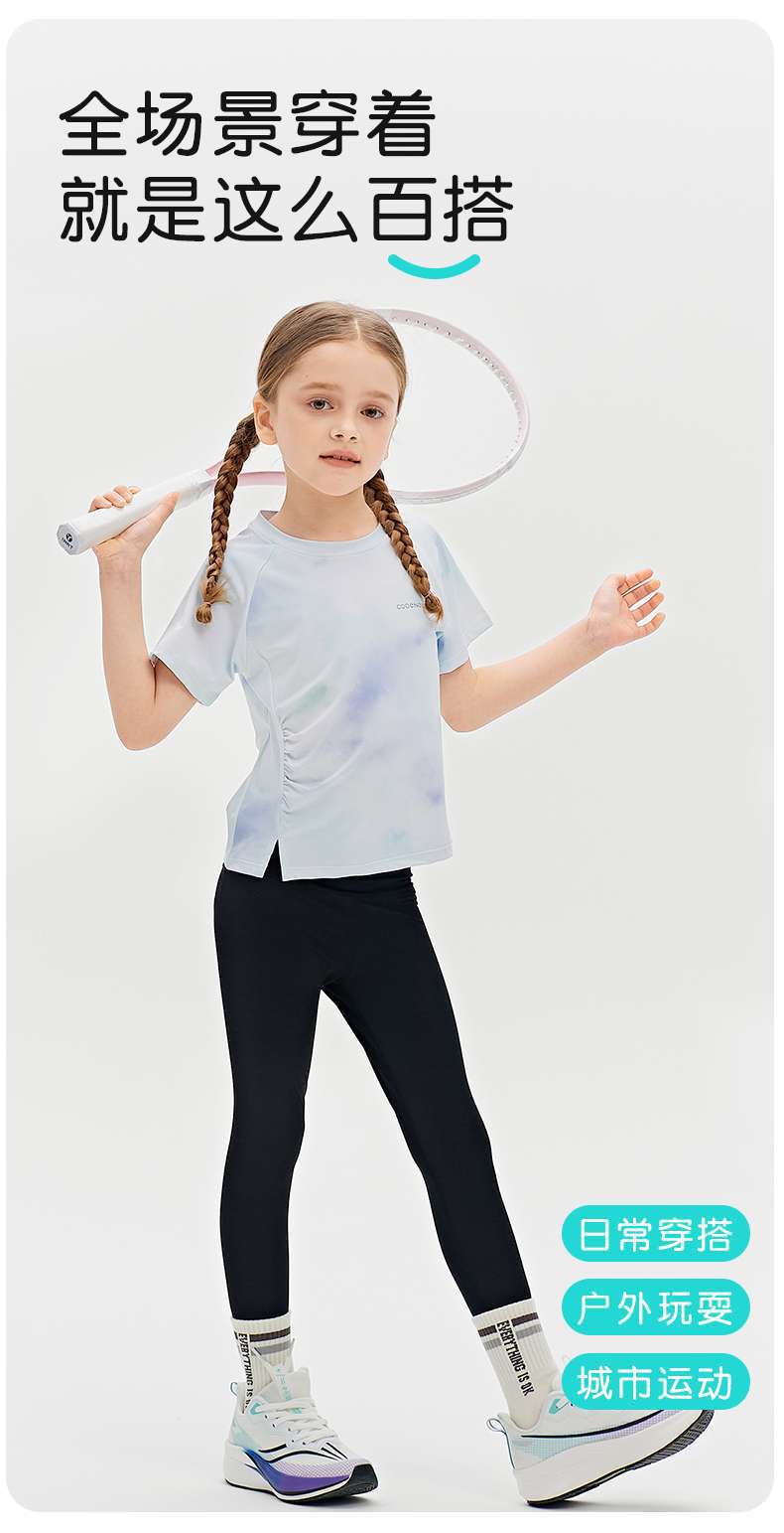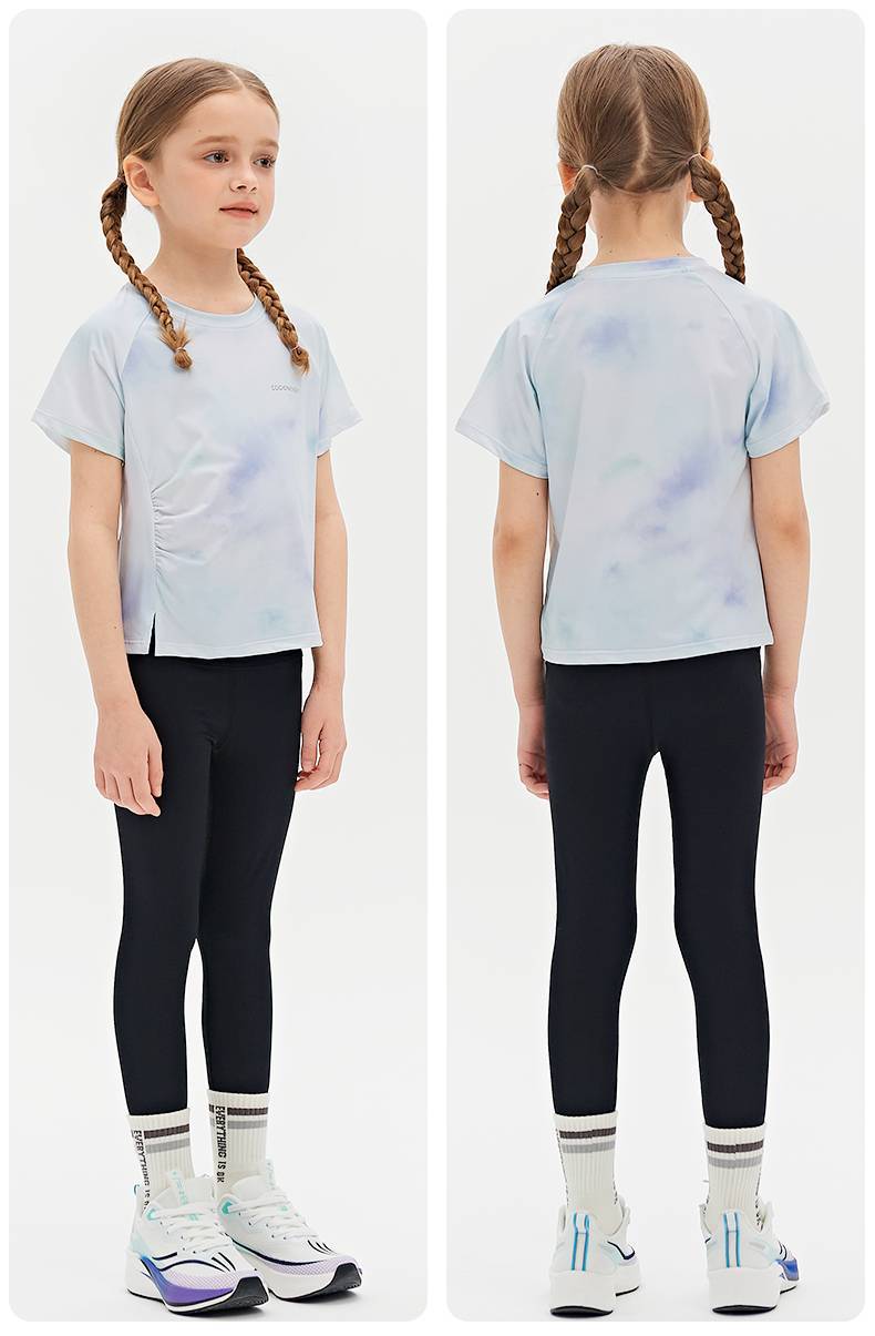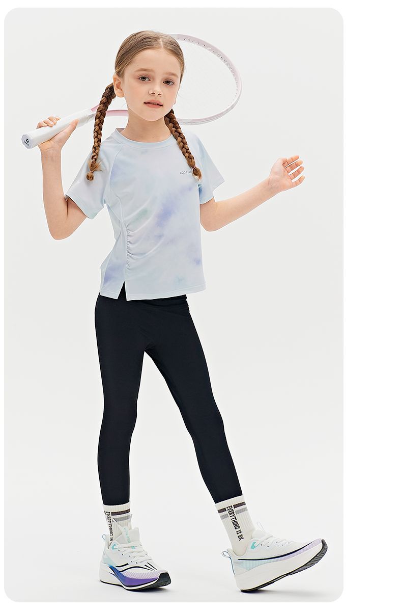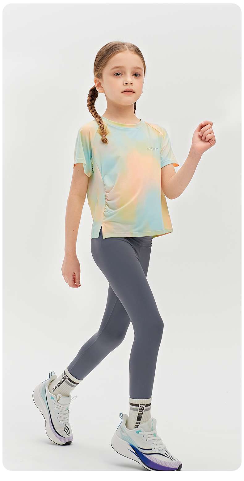 Футболка для девочек, летняя, средняя и большая, детский солнцезащитный топ с принтом «ласточкин хвост», уличный персонализированный спортивный быстросохнущий спортивный топ с короткими рукавами и складками