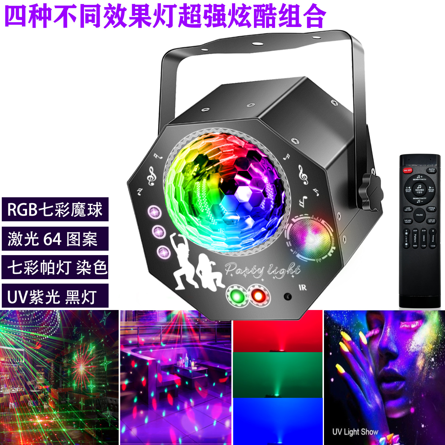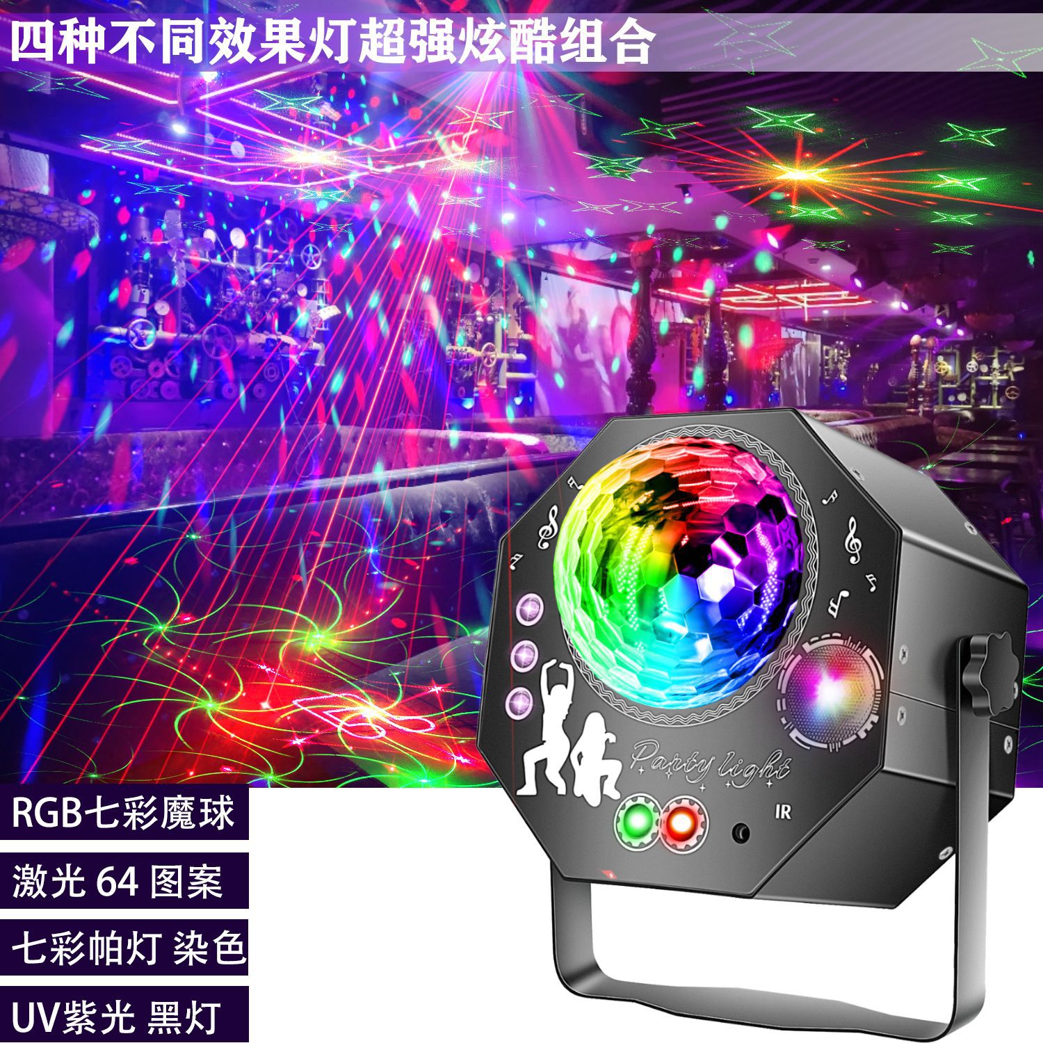 Новый лазерный проектор для сцены, миниатюрный, 4-в-1, с УФ-фиолетовым светом, лазерный проектор для караоке, баров, вечеринок, с проекцией узоров.