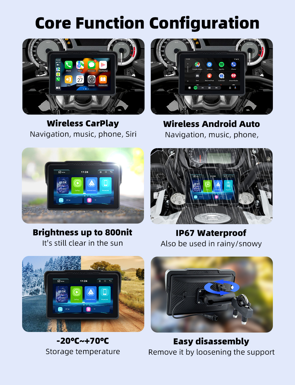 M4【 7inch мотоцикл Carplay】; M4+DVR [с передней и задней камерами]; M4+DVR+TP [с передней и задней камерами + контроль давления в шинах]