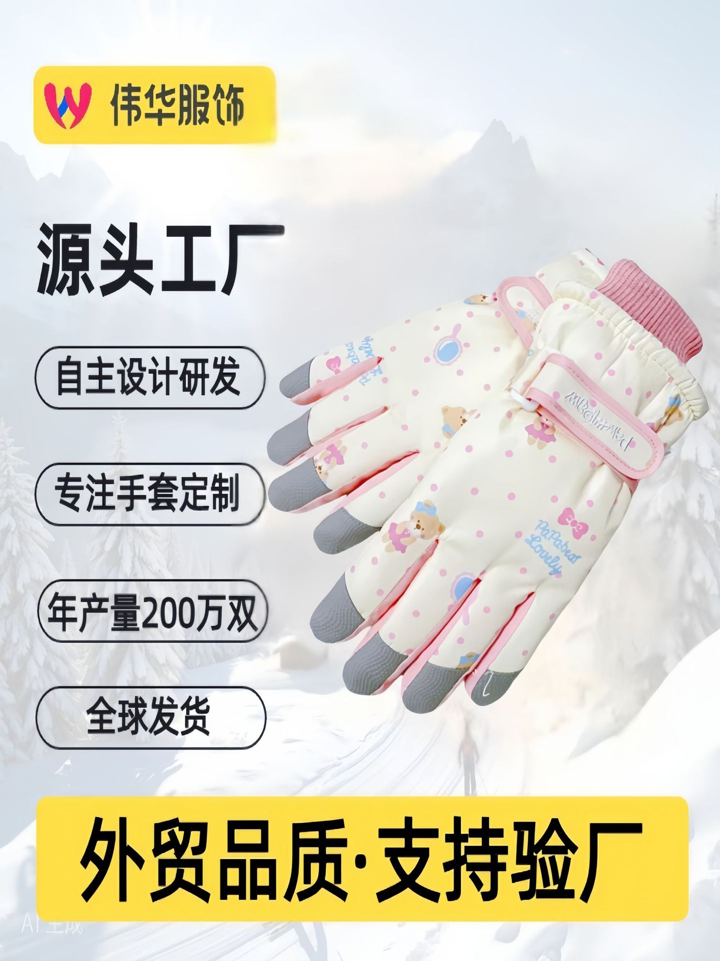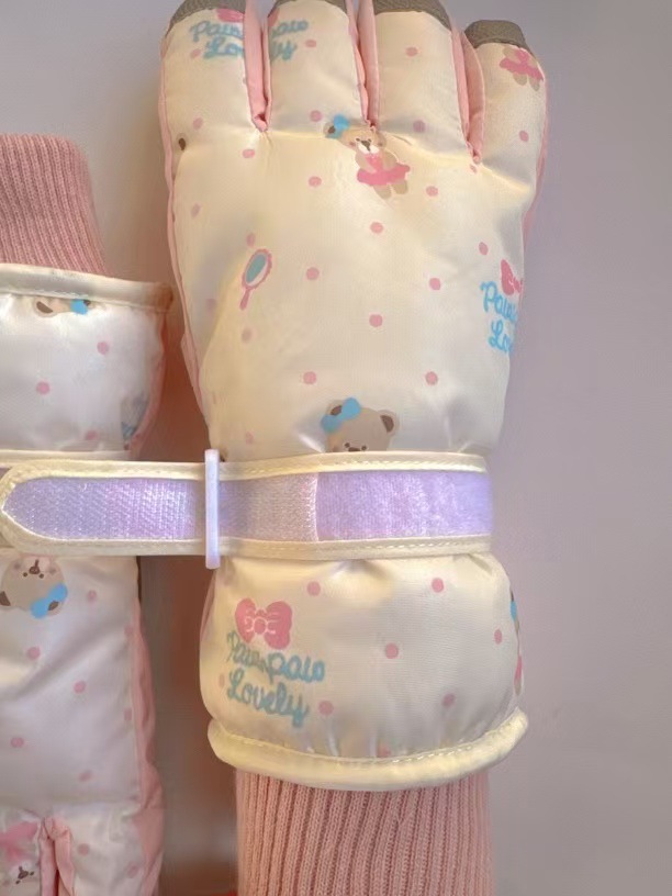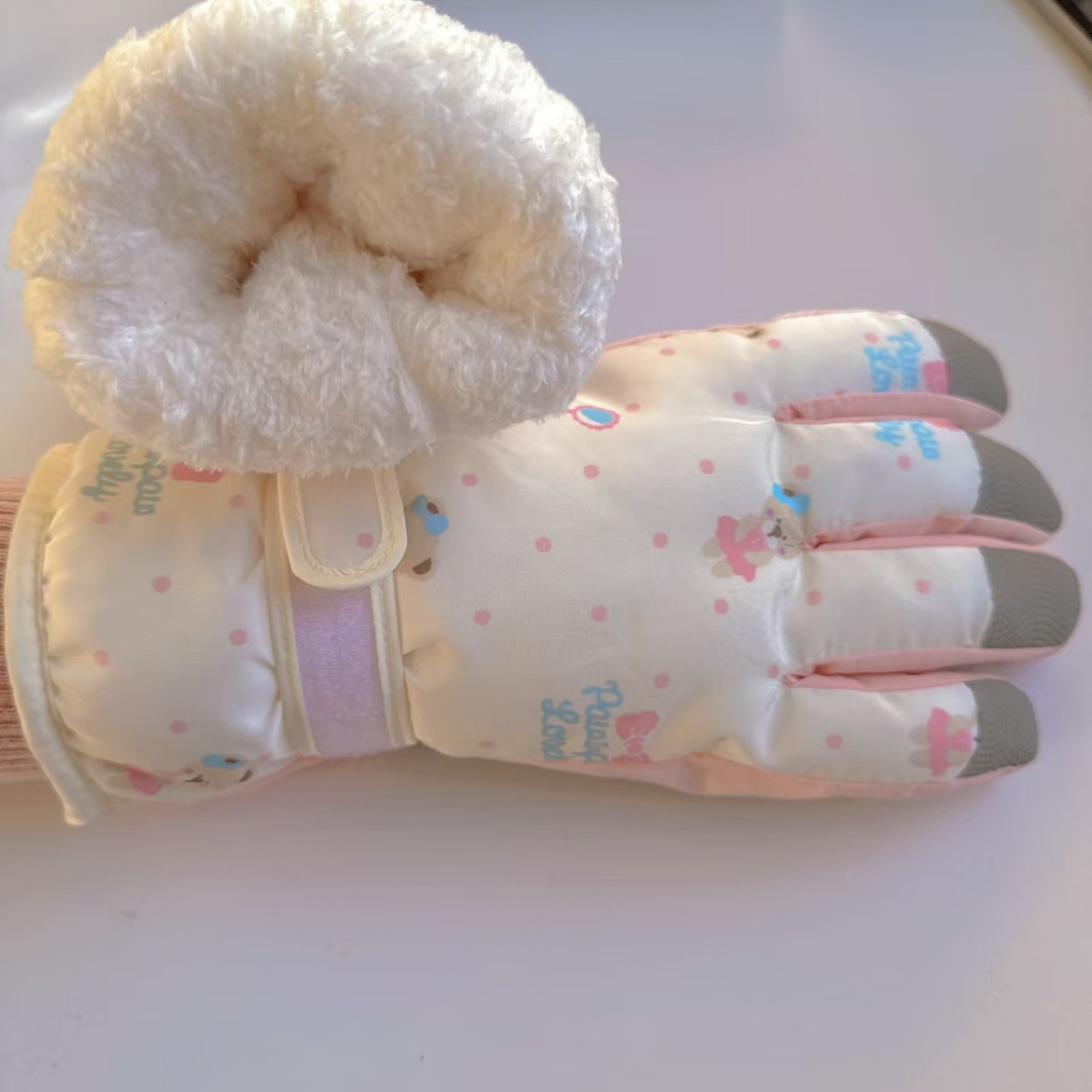 Зимние перчатки для занятий спортом и активного отдыха, женские утолщенные дорожные лыжные перчатки на флисовой подкладке с медвежьей тематикой, ветрозащитные и морозостойкие термоперчатки.