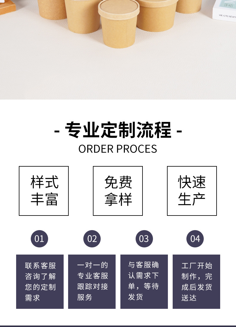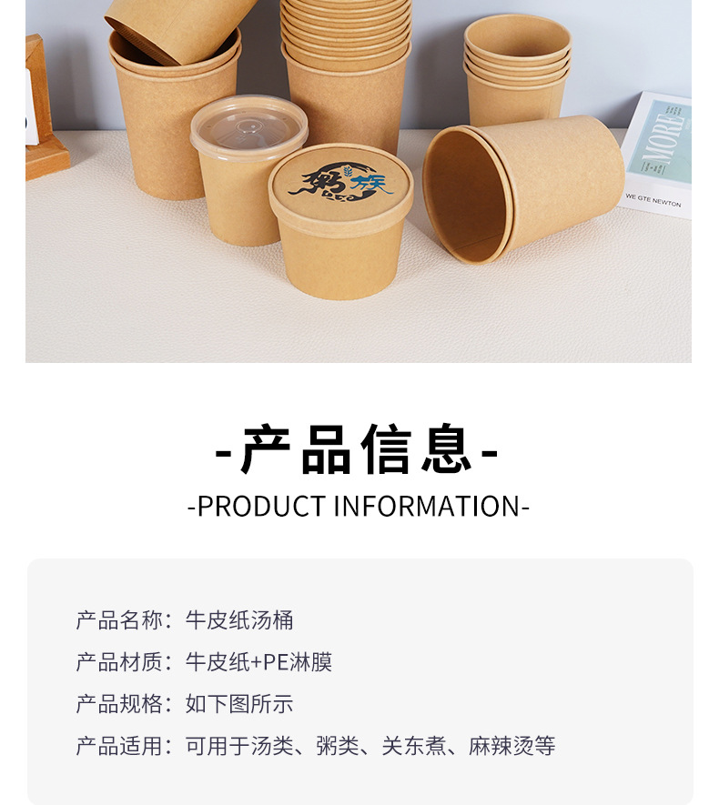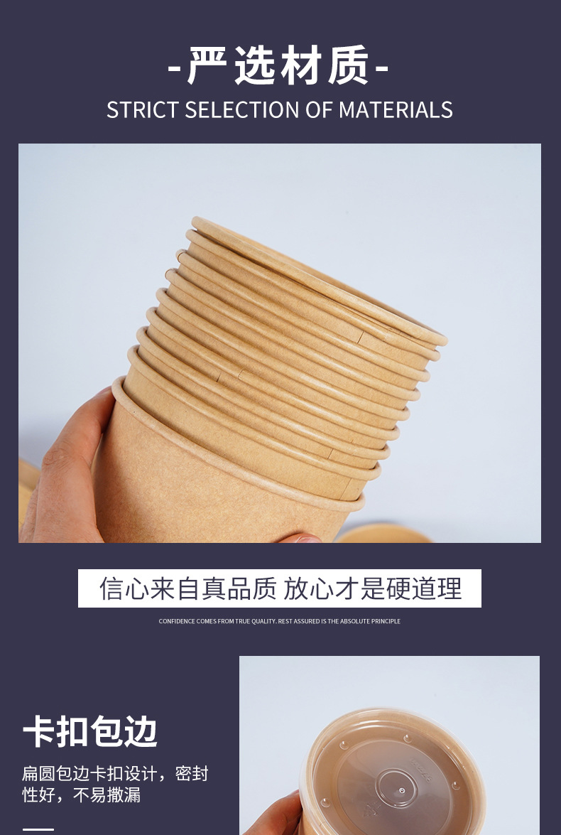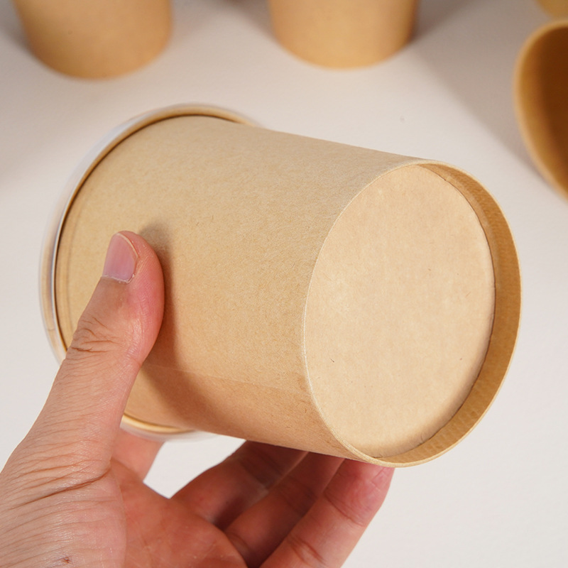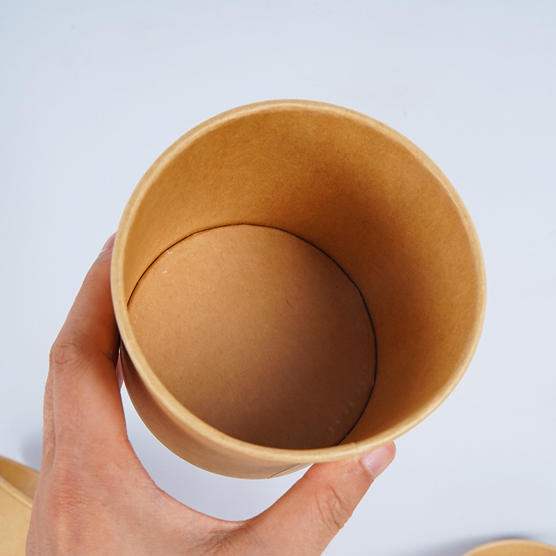 Одноразовая бумажная миска, ведро для супа, миска из крафт-бумаги, круглая миска для супа, поддерживает индивидуальную коробку для фаст-фуда, упаковка на вынос, бумажная миска, оптовая продажа
