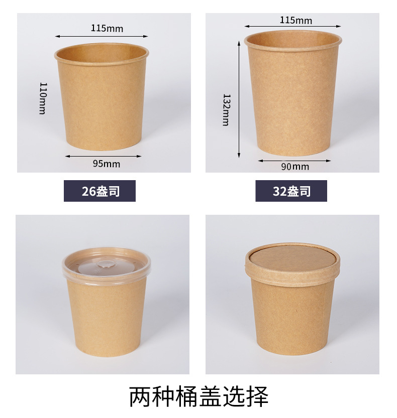 бумажная обложка; полипропиленовая крышка; Ведро для супа из крафт-бумаги + бумажная крышка; Ведро для супа из крафт-бумаги + крышка из полипропилена; Ведро для супа из крафт-бумаги без крышки