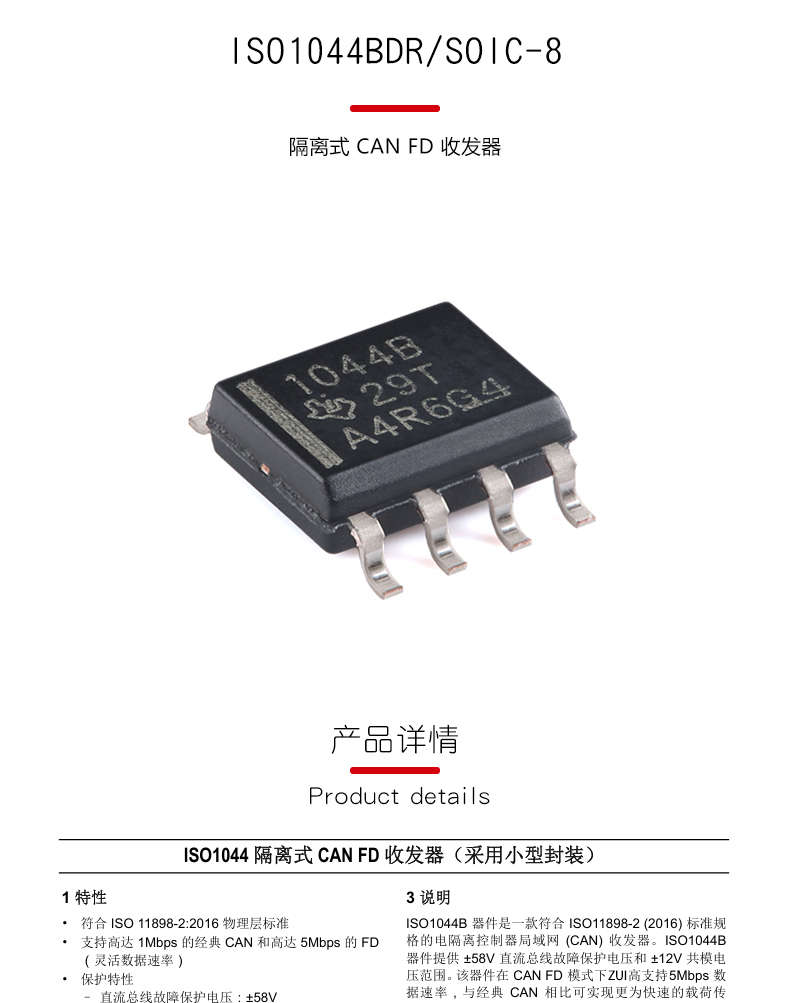 Оригинальный ISO1044BDR SOIC-8 изоляционный чип трансивера CAN FD