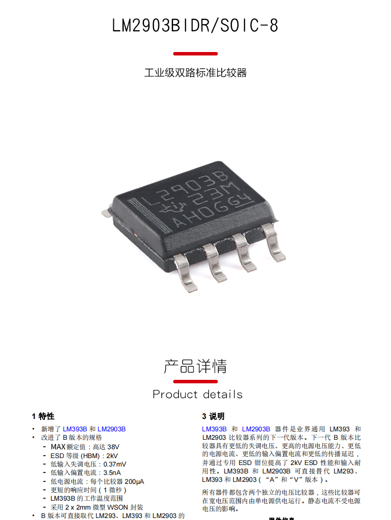 Оригинальный LM2903BIDR SOIC-8 промышленный класс двойной стандартный компаратор чип