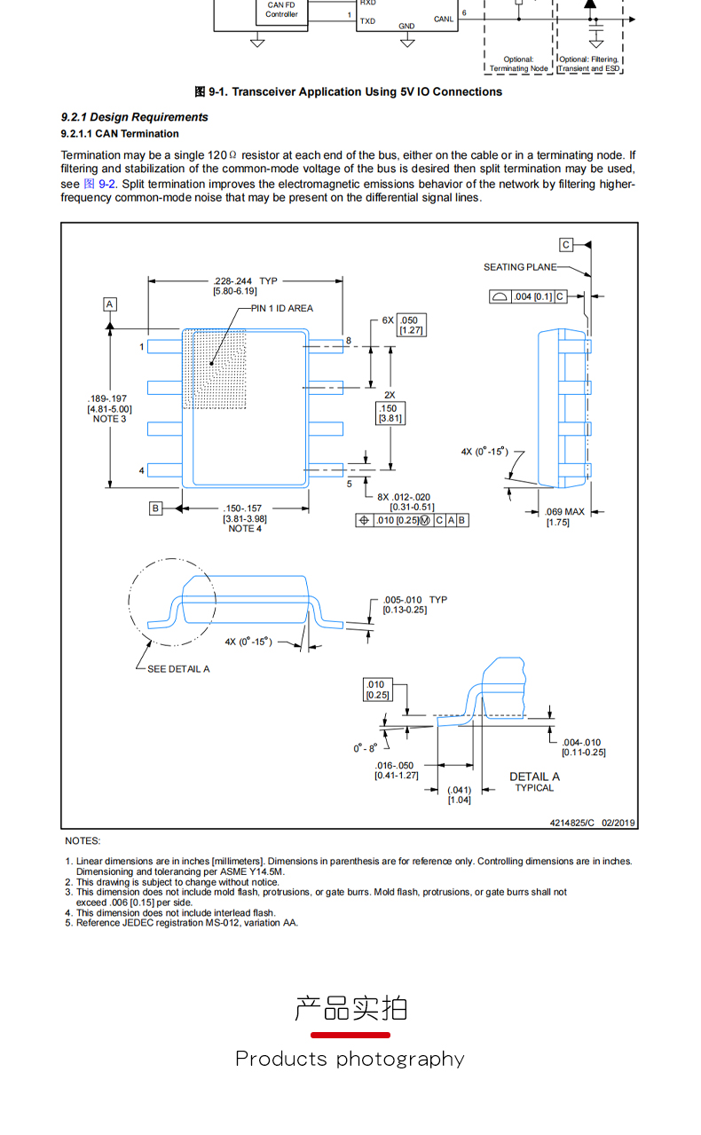 Оригинальный SOIC-8 TCAN1044AVDRQ1 с режимом ожидания и приемопередатчиком 1.8V I/O CAN