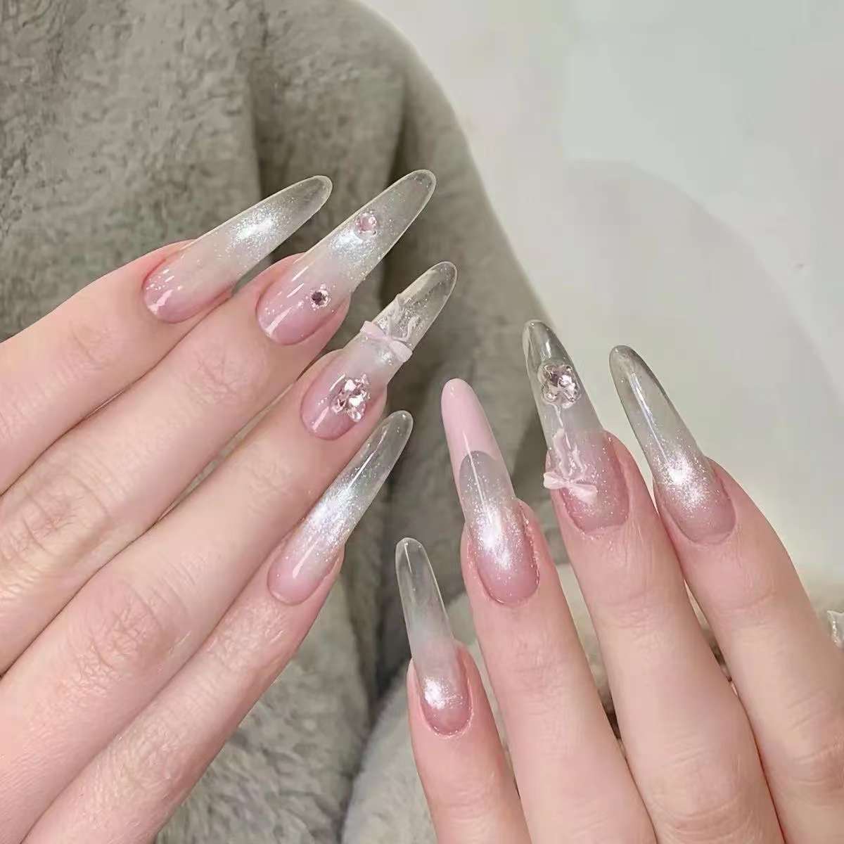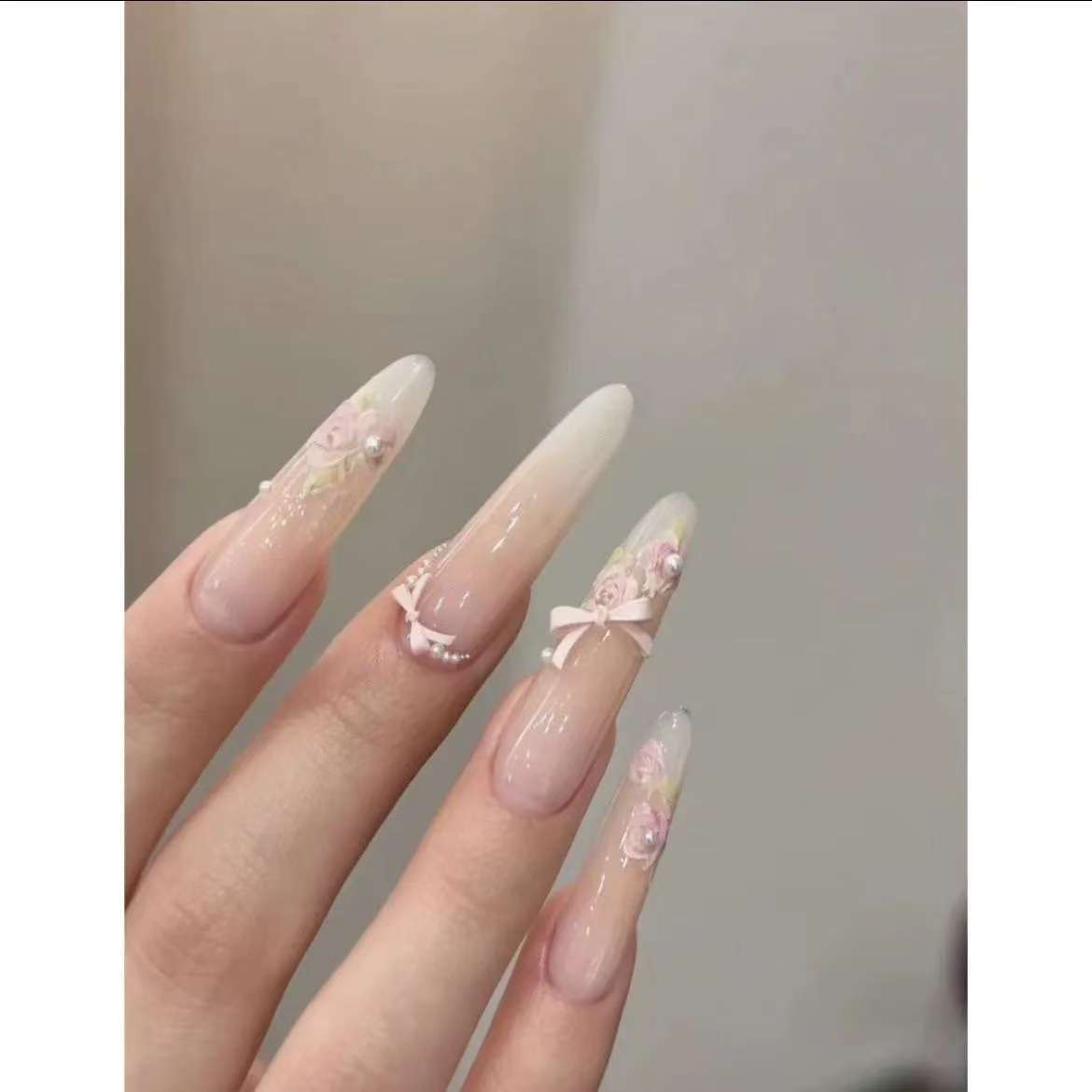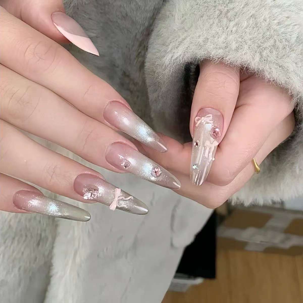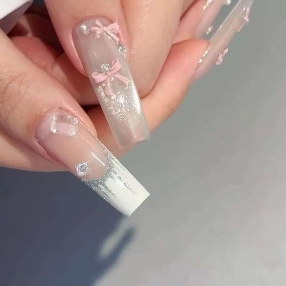 Модный розовый бант в стиле Instagram для дизайна ногтей, мини-бабочка, лента, носимые наклейки для фототерапии ногтей своими руками со стразами.