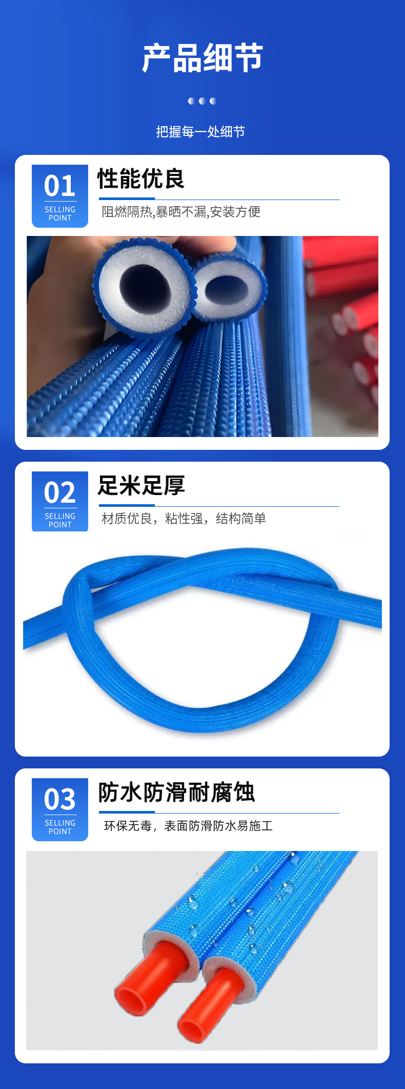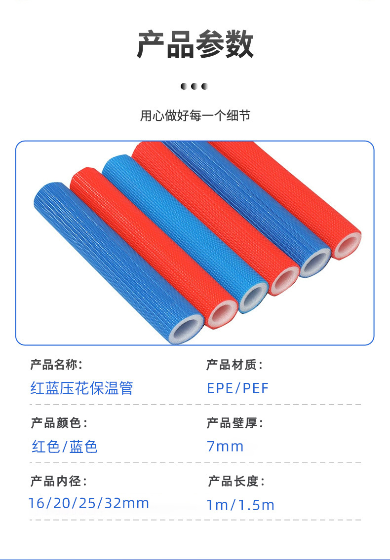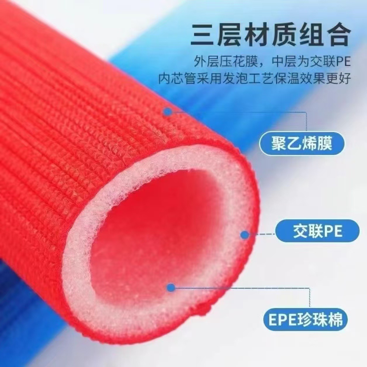 Красная и синяя тисненая изоляционная труба, коллектор изоляции для подогрева пола, тисненая изоляционная труба, изоляционный кожух из жемчужной хлопчатобумажной ткани, высокая термостойкость