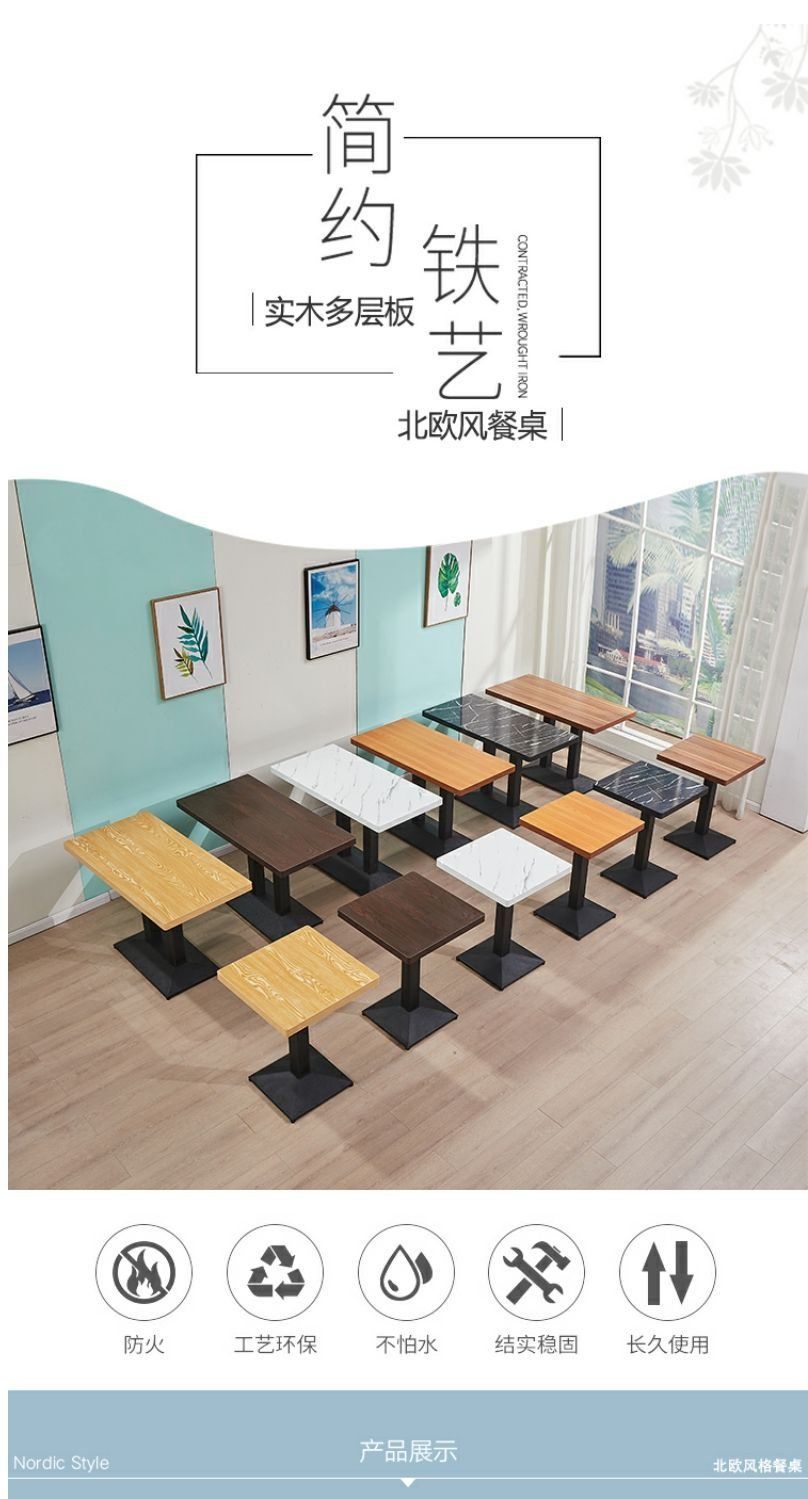 Набор столов и стульев из массива дерева для кафе, магазина молочного чая, бургерной, ресторана быстрого питания, лапшичного кафе, обеденный стол и табуреты