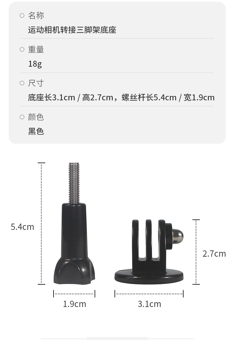 此款转接底座用于将运动相机固定到三脚架上。