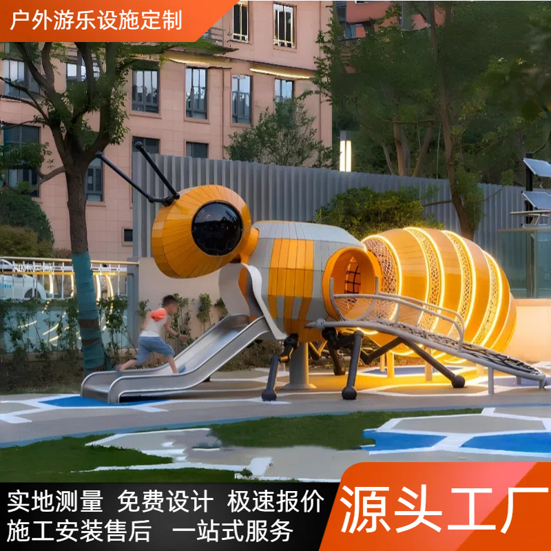 Большой игровой комплекс из нержавеющей стали с горкой-мостом без электропривода для детских площадок, парков и нестандартных игровых зон общественного назначения.