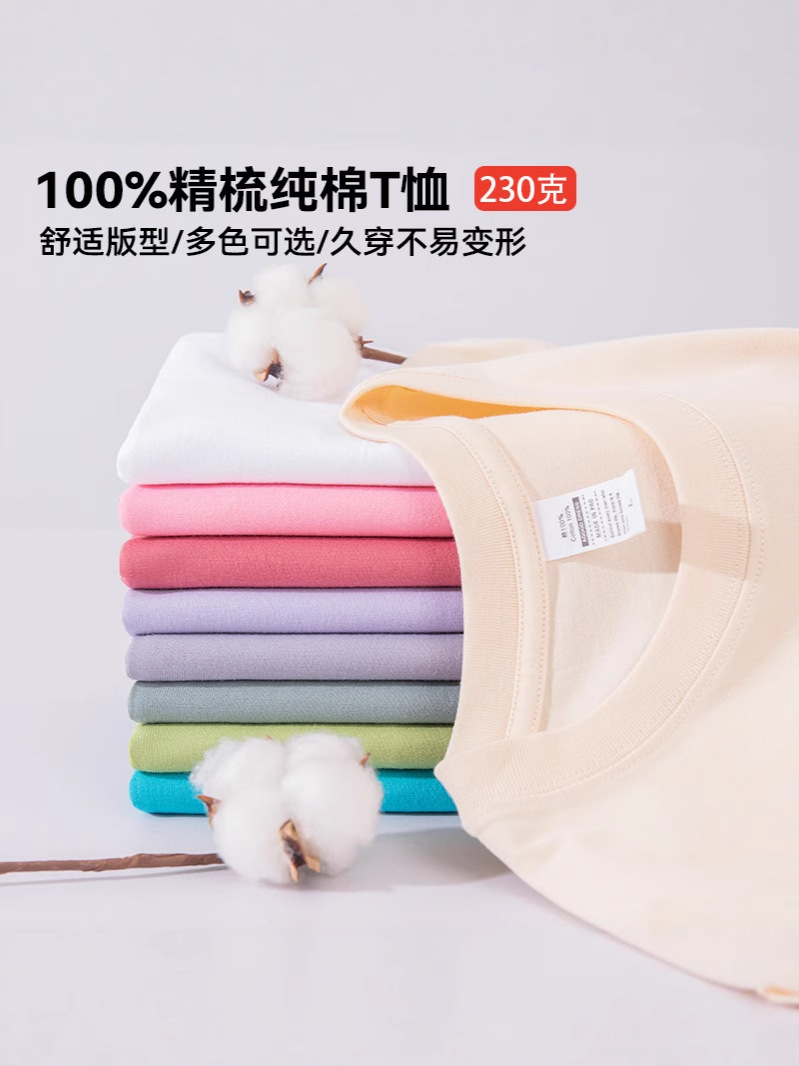 Летняя мужская футболка с короткими рукавами и круглым вырезом, 230 г, тяжелая, однотонная, с принтом логотипа, белая футболка из чистого хлопка, оптовая продажа