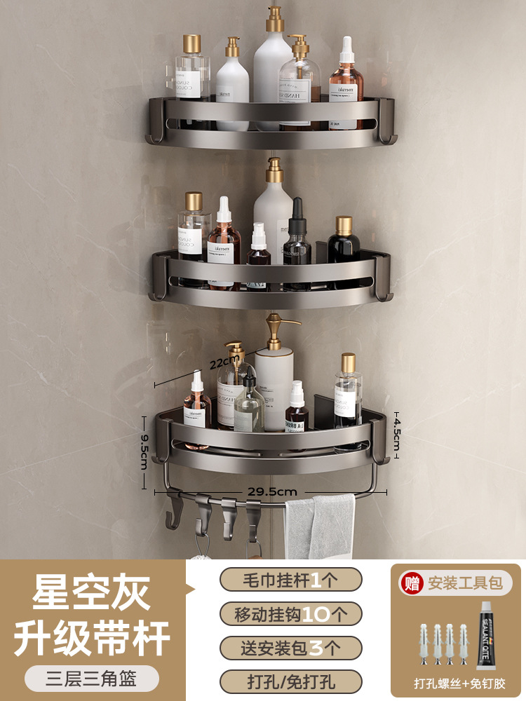 Треугольная корзина для ванной комнаты без перфорации, настенная подвесная стойка, серый космический алюминиевый стеллаж для хранения в ванной комнате, угловая полка для хранения в ванной комнате