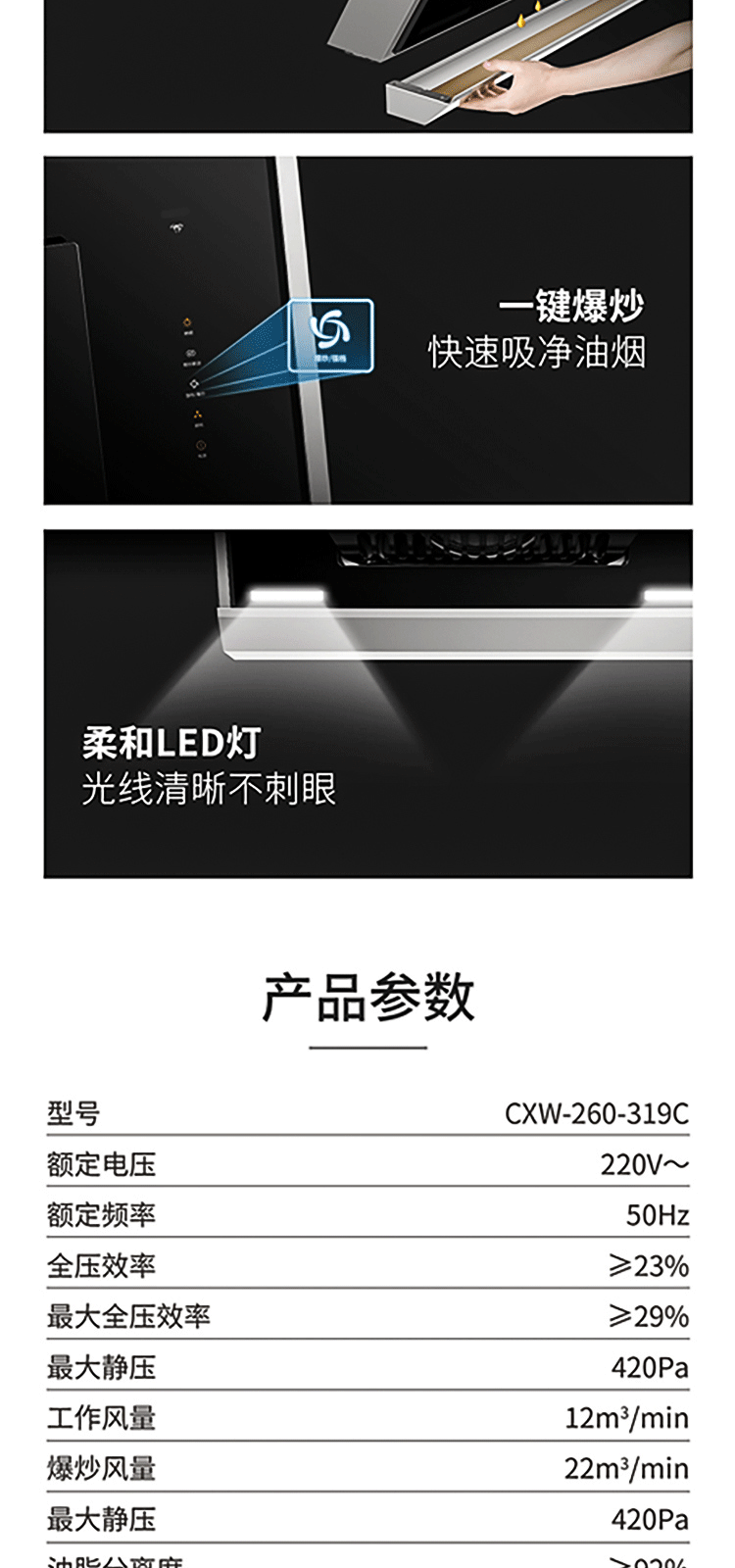 Набор вытяжек Boss Name 319C+619B с высокой мощностью всасывания для домашнего использования с боковым всасыванием.