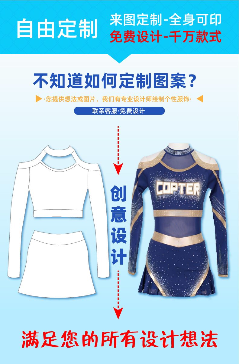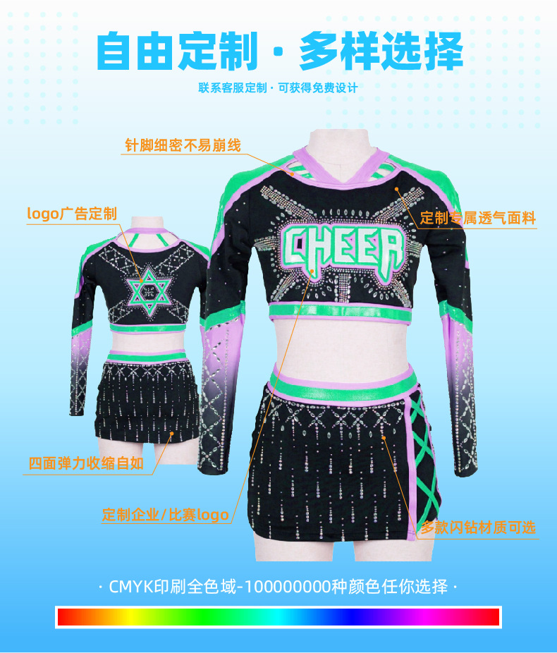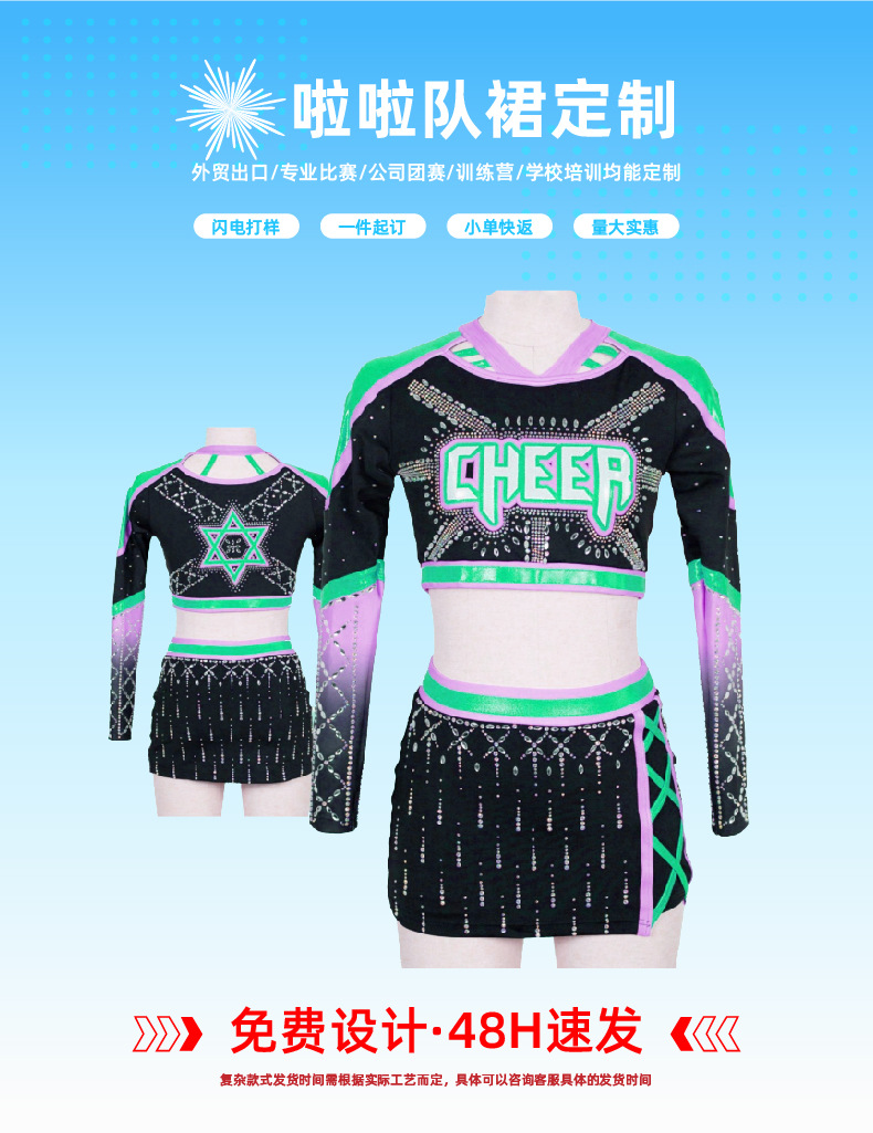 Спортивная одежда для бодибилдинга, теплопередача, цифровая печать, высококачественный костюм для черлидинга, европейская и американская сцена для выступлений для взрослых и детей