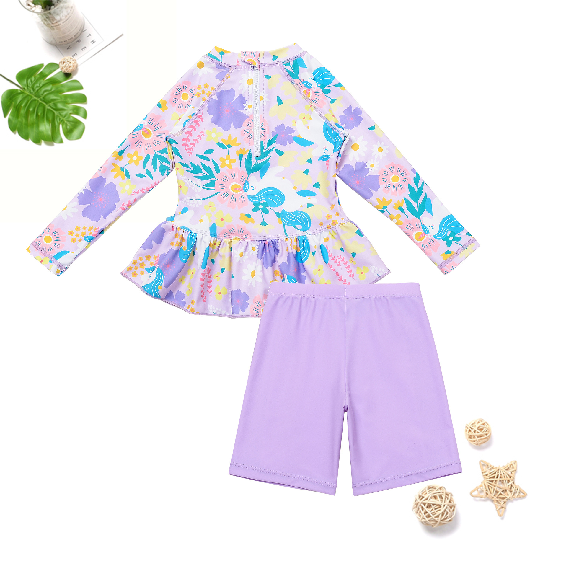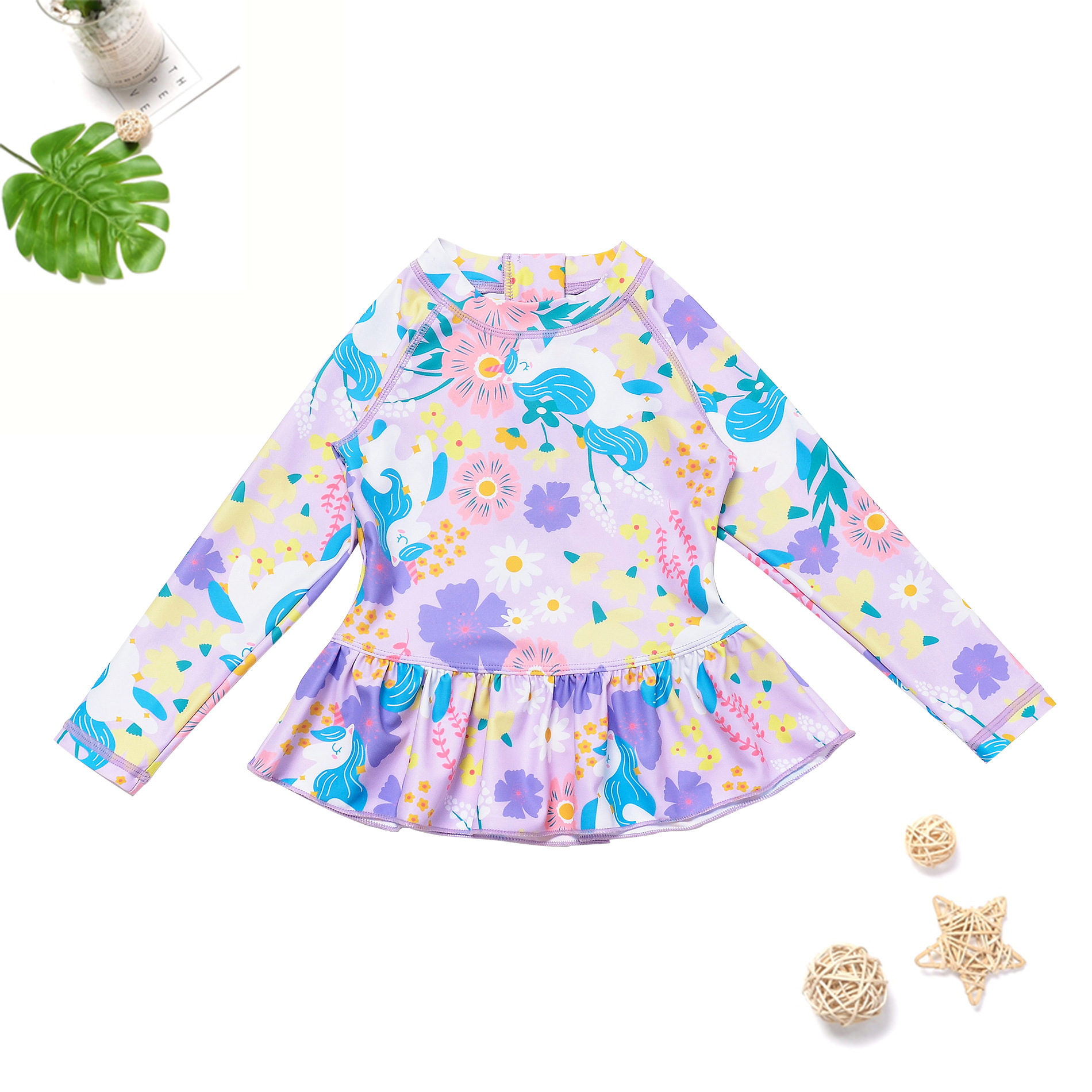 Новый стиль 2022, розовая милая юбка с цветком глицинии для детей и девочек, защита от солнца, быстросохнущий купальник для серфинга с длинными рукавами и разрезом