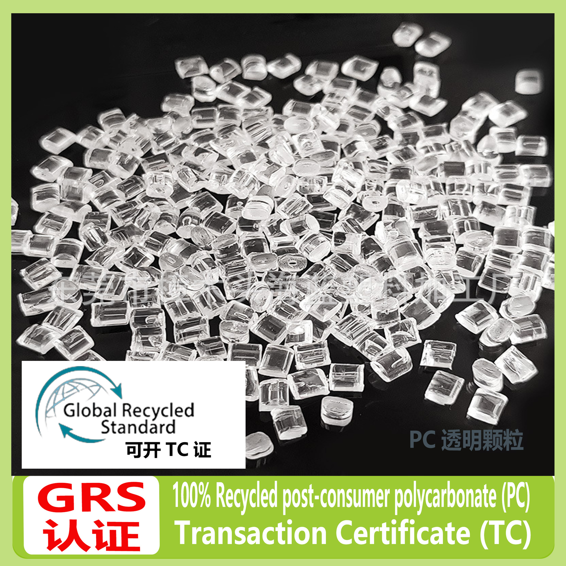 Переработка ПК, переработанный пластик ПК, частицы пластика ПК, официальная сертификация GRS, производитель может выдать сертификат TC для транзакций.