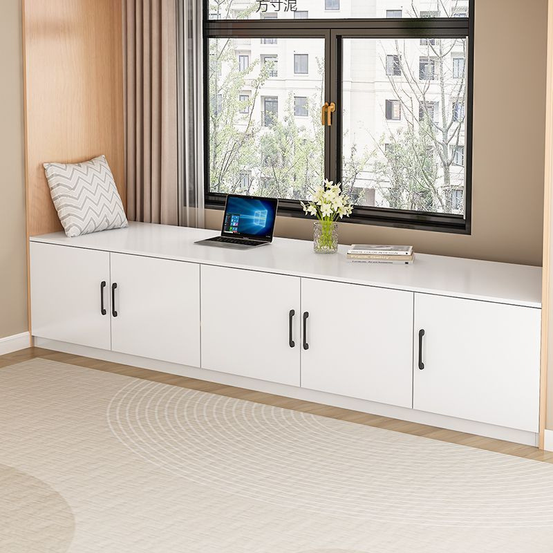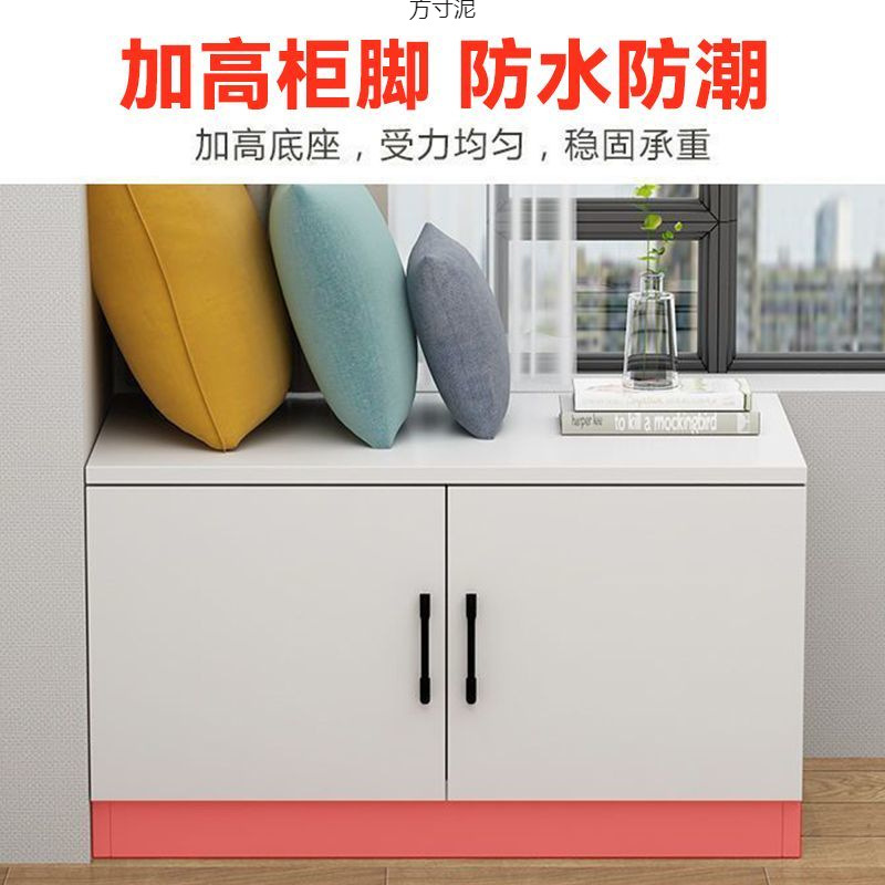 Шкаф с эркером можно использовать в качестве длинного шкафа из массива дерева у стены, тонкого табурета для смены обуви на балконе, утолщенного, прочного, кремового простого цвета.