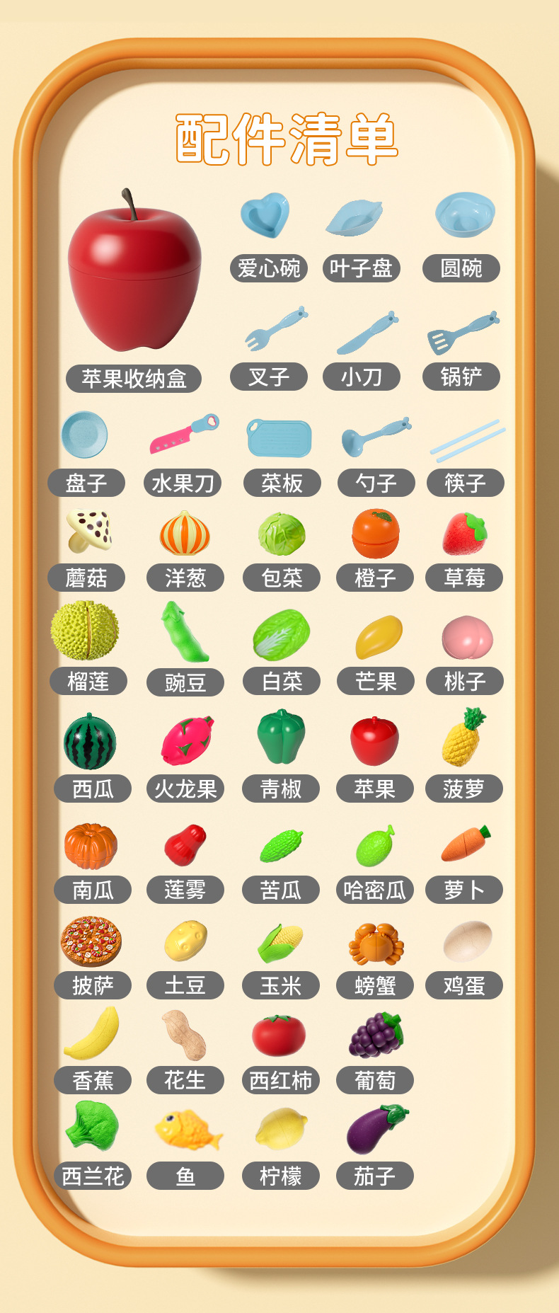 Музыка для очистки и резки 18шт.; Очистка и резка 27 шт.; Очистка и резка 35 шт.; Очистка и резка 41 шт.; Веселый набор для чистки и нарезки, 43 предмета (дурьян представлен в 2 частях).