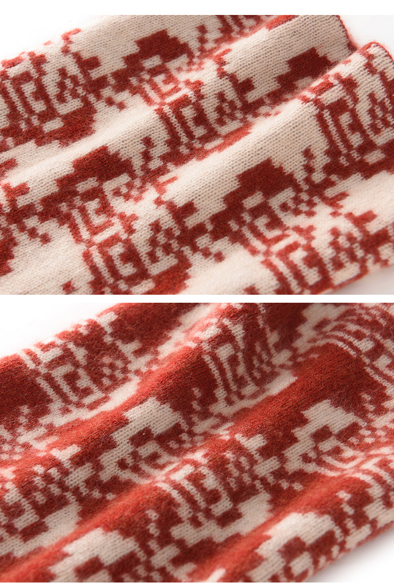 Производитель оптом кашемировый жаккардовый утолщенный ретро теплый вязаный пуловер с кашемировым шарфом для женщин в наличии