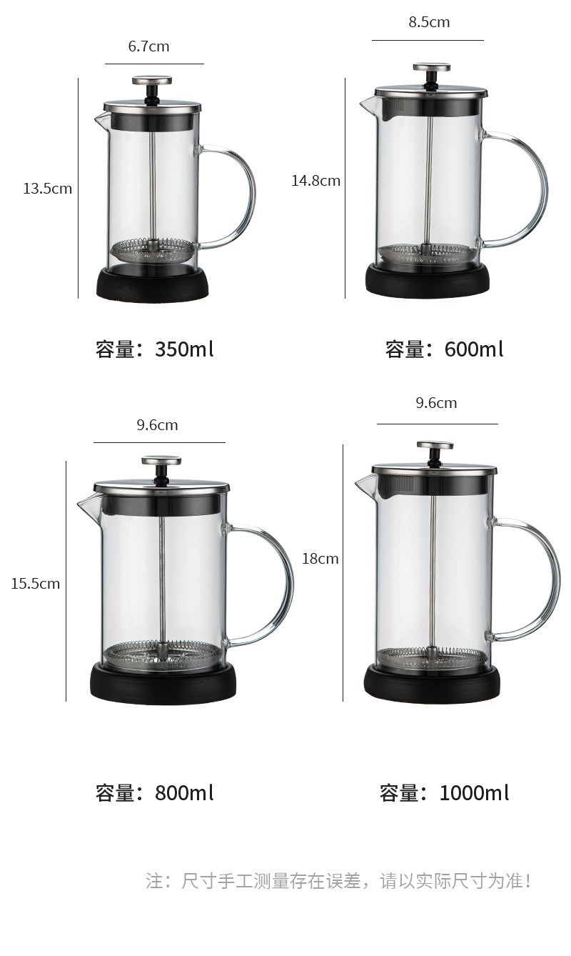 Кофейник на 350 мл/френч-пресс; Кофейник на 600 мл/френч-пресс; Кофейник/френч-пресс на 800 мл.; Кофейник на 1000 мл/френч-пресс